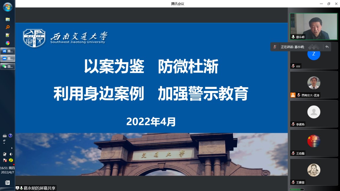 2022-04-112022年4月7日,伟德官网生物工程系教工党支部在线上开展师德师风警示教育活动,公司党委书记葛永明参加并开展了“以案为例,...