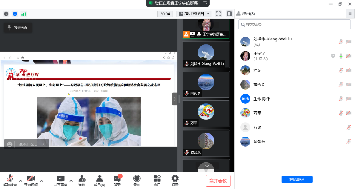 2022-04-202022年4月14日下午16:00,化学化工教工党支部线上开展了“携手同心,共守校园”主题党日活动及政治理论学习。会议由党支部书记王毅主持。...
