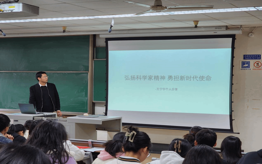 首先,药学系教工党支部书记王宁宇老师以“弘扬科学家精神,勇担新时代使命”为主题分享了自己的科研经历及对科学家精神的理解,用“科学性”、“严谨性”、“专注性”和“耐性”四个关键词概括了科研人员应具备的基本素质。随后王老师结合自身求学和教学经历,分享了关于科学研究的几点感悟和建议,并对公司研究生提出希望,希望同学们能够具备底线思维,保持足够的专注度和耐性,重视合作和交流,培养科学素养与科学精神。