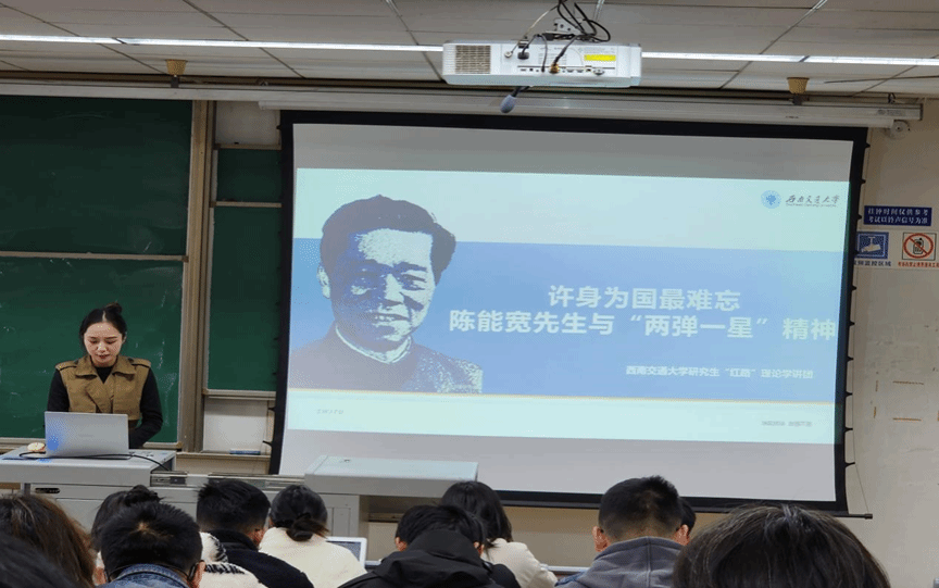 接着,研究生“红路”理论学讲团副团长何佳乐同学以“陈能宽先生与‘两弹一星’精神”为主题,为同学们分享了陈能宽院士许身为国的伟大精神。详细介绍了伟德官网员工、“两弹一星”功勋奖章获得者陈能宽院士的生平事迹和所获成就。通过学习,同学们了解了陈能宽院士从出国求学、扬名海外到毅然回国、科技报国的经历。最后何佳乐号召同学们学习陈院士不畏艰辛、淡泊名利、甘于奉献的许身为国精神。