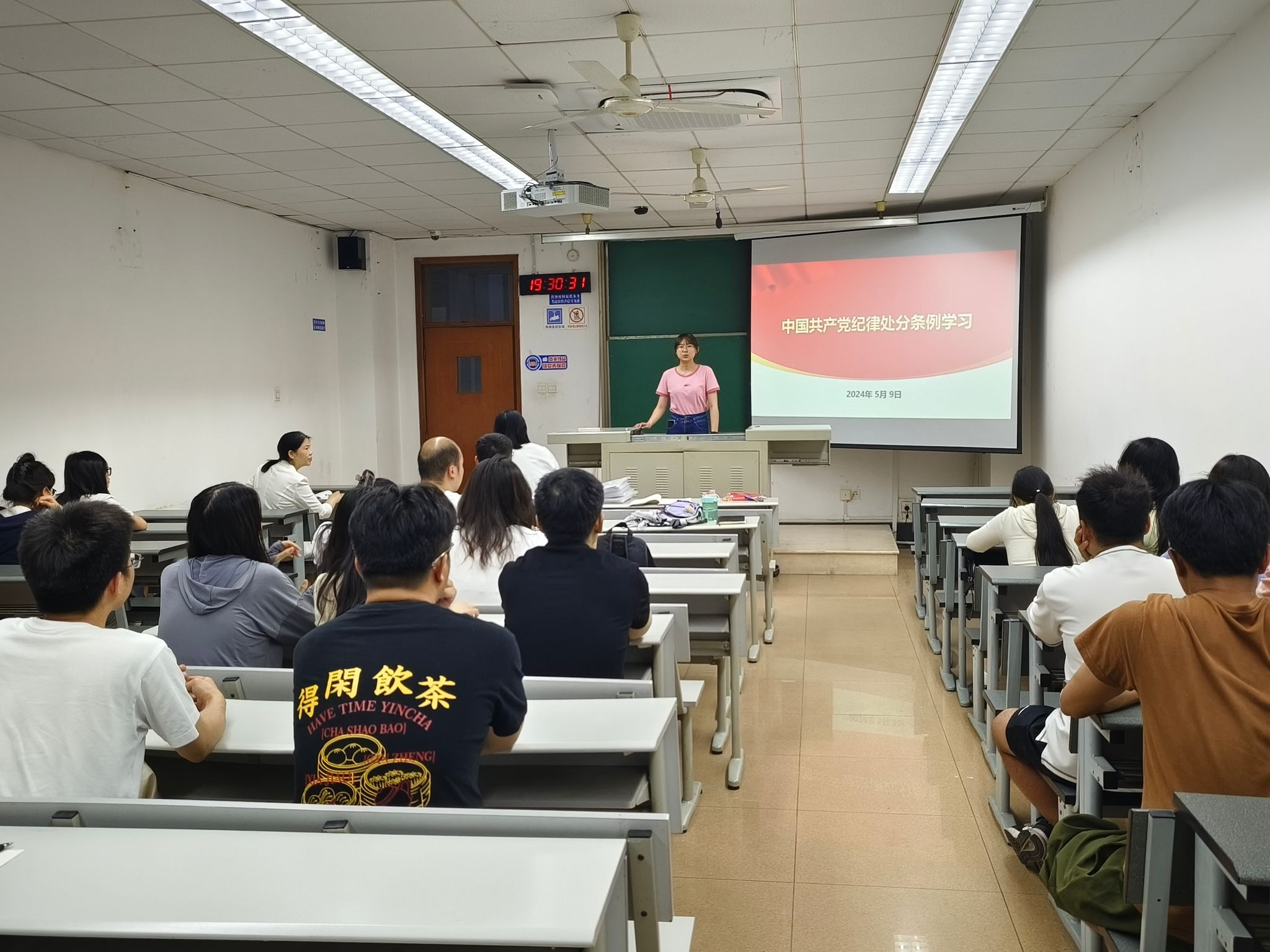 为全面加强党的纪律建设,引导党员同志进一步学纪、知纪、明纪、守纪,研究生第五党支部于2024年5月9日晚19:30在J4504B进行“学条例·守党纪·强党性”读书交流会主题党日活动。会议由党支部书记陈硕主持,公司党委书记黄春蓉参会活动并讲党课。
