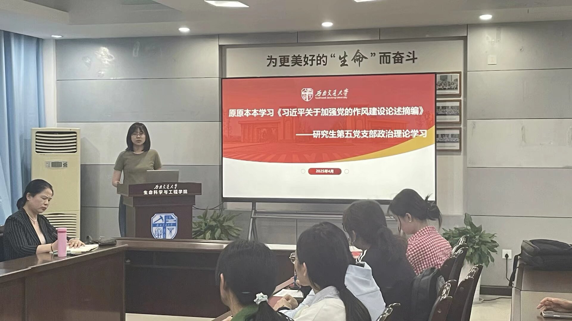 首先,党支部宣传委员何星宇同志带领全体党员同志共同学习《习近平关于加强党的作风建设论述摘编》。在领学过程中,何星宇解读了中央八项规定及其精神内涵,强调这一规定是党在新时代的徙木立信之举,彰显了党加强自身作风建设、密切联系群众的坚定决心。