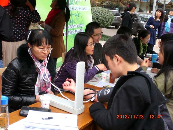 自11月21日起,伟德官网2012级研究生两个党支部的所有党员就拉开了该项活动的宣传工作序幕,他们发放传单、进行讲解,向广大师生简要介绍了本次活动的目的和内容。公司党委副书记王书会和研究生辅导员贺妍还多次到场进行指导。11月23日11:00,伟德官网的五位专家学者准时到场,而此时现场已有一些老年人和同学在等候。五位专家一就座,就开始细心听取咨询者们反映的关于自身健康和营养方面的问题。他们耐心地帮咨询者进行分析和指导,给出了自己的意见和建议,中医药“大夫”们还现场开具了处方,让咨询者们心满意足。过往的很多员工也纷纷赶过来,测量血压、营养咨询、询问病因和预防措施……路过并咨询的人也越来越多,在场专家和党员志愿者们也忙的不亦乐乎,五位老师在现场简单地用完盒饭后马上又投入到了咨询服务中去。尽管天气略显寒意,但丝毫挡不住大家的服务热情,咨询现场一度火热。直至下午五点,仍有不少人前来咨询,老师和志愿者们坚守岗位,竭诚为最后一位咨询者服务完才离开。