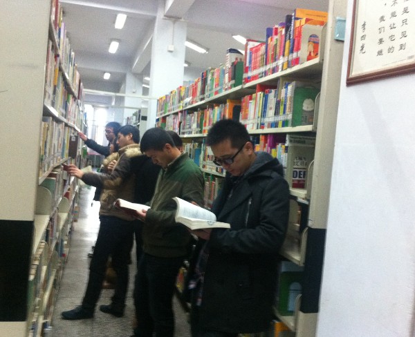 2013年12月14日,2012级2班研究生党支部在九里校区图书馆举行了“我的中国梦之——为中国崛起而读书”活动,活动于下午14:00开始,支部成员积极参与,大家在图书馆看书、读书,进行交流活动。