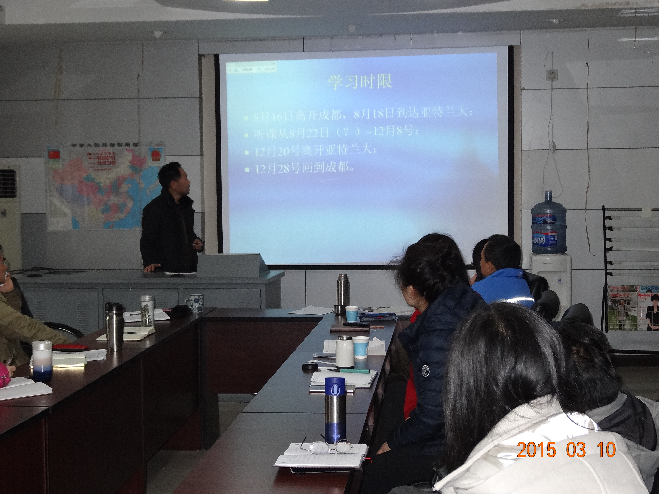 2015年3月10日上午9点,公司召开了出国教师学习汇报会。公司助理及以上党政班子成员、工会主席、系主任、办公室主任出席了会议。