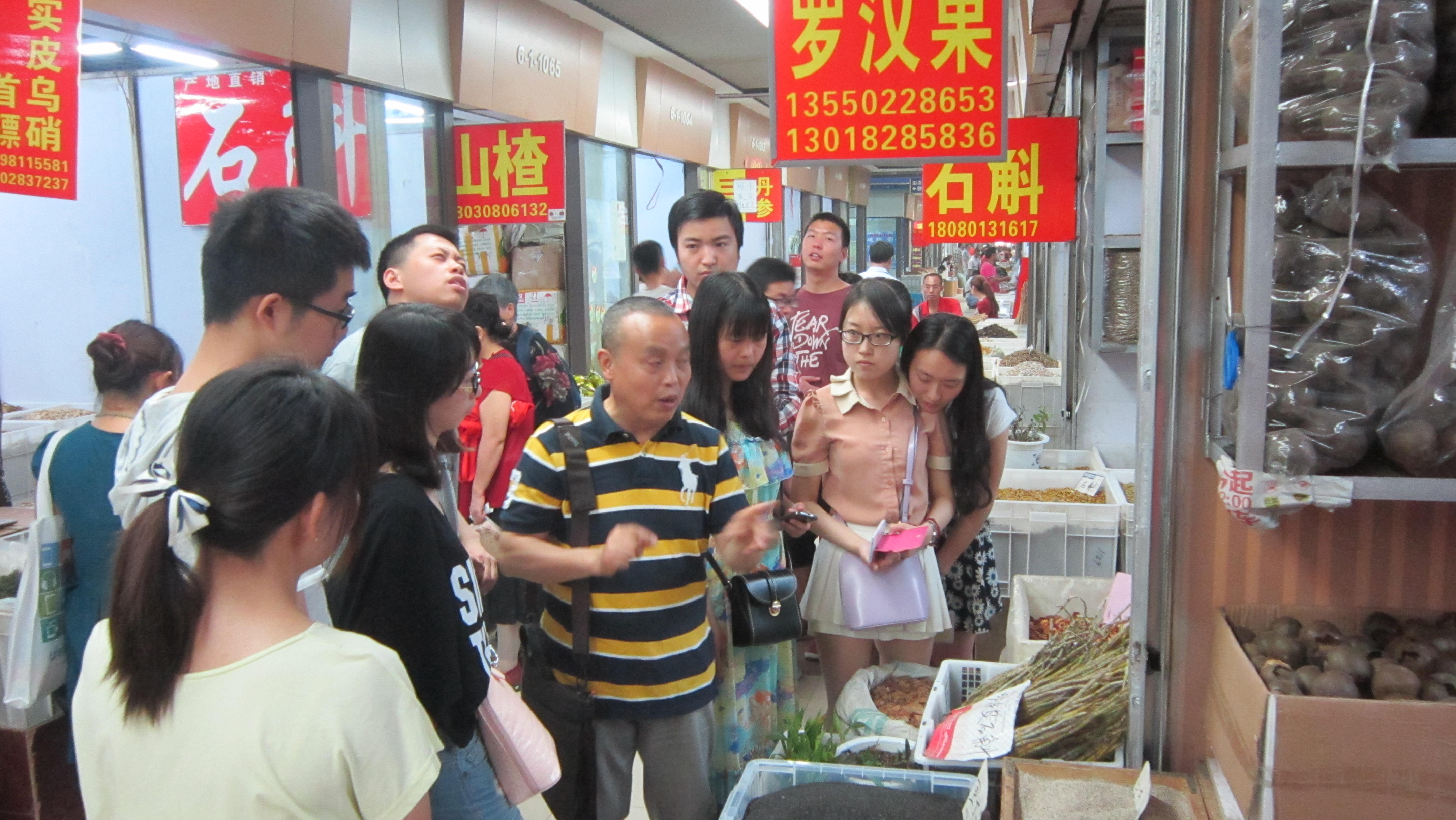 为传承中药文化,提升专业素养,了解中药材市场的发展状况,同时也为创建学习型党支部,增强党员社会实践能力,2015年5月9日,伟德官网14级硕士2班党支部全体党员来到荷花池中药材专业市场开展社会实践活动。素有“西部地区最大的中药材市场,也是全球最大的虫草集散中心”之称的成都市荷花池中药市场占地142亩,建筑面积达20万平方米,经营品种约4500种,常见药材近2000种,是目前全国体量最大、硬件设施最优秀的中药材专业市场。为详尽了解中药常见品种,党支部特意邀请公司中药资源品质鉴定方面的专家张兴国老师一同前往。张老师为同学们精心讲解了各种药材的品质鉴定方法、入药方式、功能疗效等,使同学们收获良多,将理论知识与实践相结合,融会贯通,为以后的科研工作打下坚实的基础。