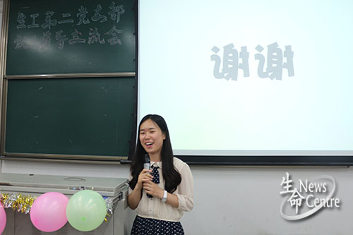 本科生工第二党支部指导老师张敬文、兄弟党支部书记赵雷蕾、黄灿等出席大会,而2011级保送至浙江大学的彭琪、考研至四川老员工物治疗国家重点实验室的尹丹丹及成功签约中国联通的张晓帆作为主讲嘉宾,本次交流会由预备党员2013级生工四班王漫丽同志主持。
