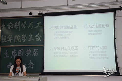 魏源成致简单开场白的后,竞选正式开始。公关部部长徐悦首先进行了精彩答辩。紧接着,文艺部部长张孟钧从工作经历、工作总结、部门认知、部门规划四个方面进行了演讲,随后是嘉宾的提问环节。接着,体育部部长蔡熠伟和办公室主任李思远依次进行答辩。最后,进行公开唱票。投票结果为:主席中张孟钧以24票领先,副主席竞选中其他三位同学票数相差不大,最后会根据本次投票及平时分的累加将结果于一周内公布到扬华素质网与公司院网上。