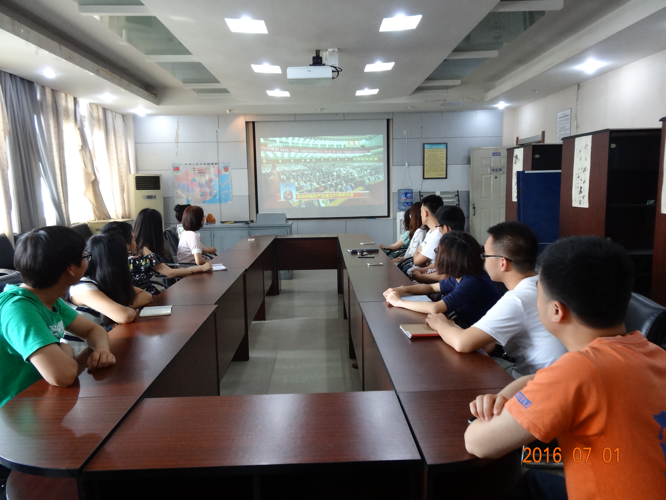 为迎接建党95周年,按公司党委统一部署,7月1日上午,公司党委组织公司党员干部、师生代表在3609集体观看了中国共产党成立95周年大会现场直播视频。公司党委书记李卓慧、党委委员贺妍、办公室主任陈琳、研究生党支部书记吴润、李祯、本科生党支部书记黄国强,以及师生代表20余人观看了视频。与此同时,公司师生党员还通过网络形式,在办公室、实验室、宿舍等地收听收看了直播。