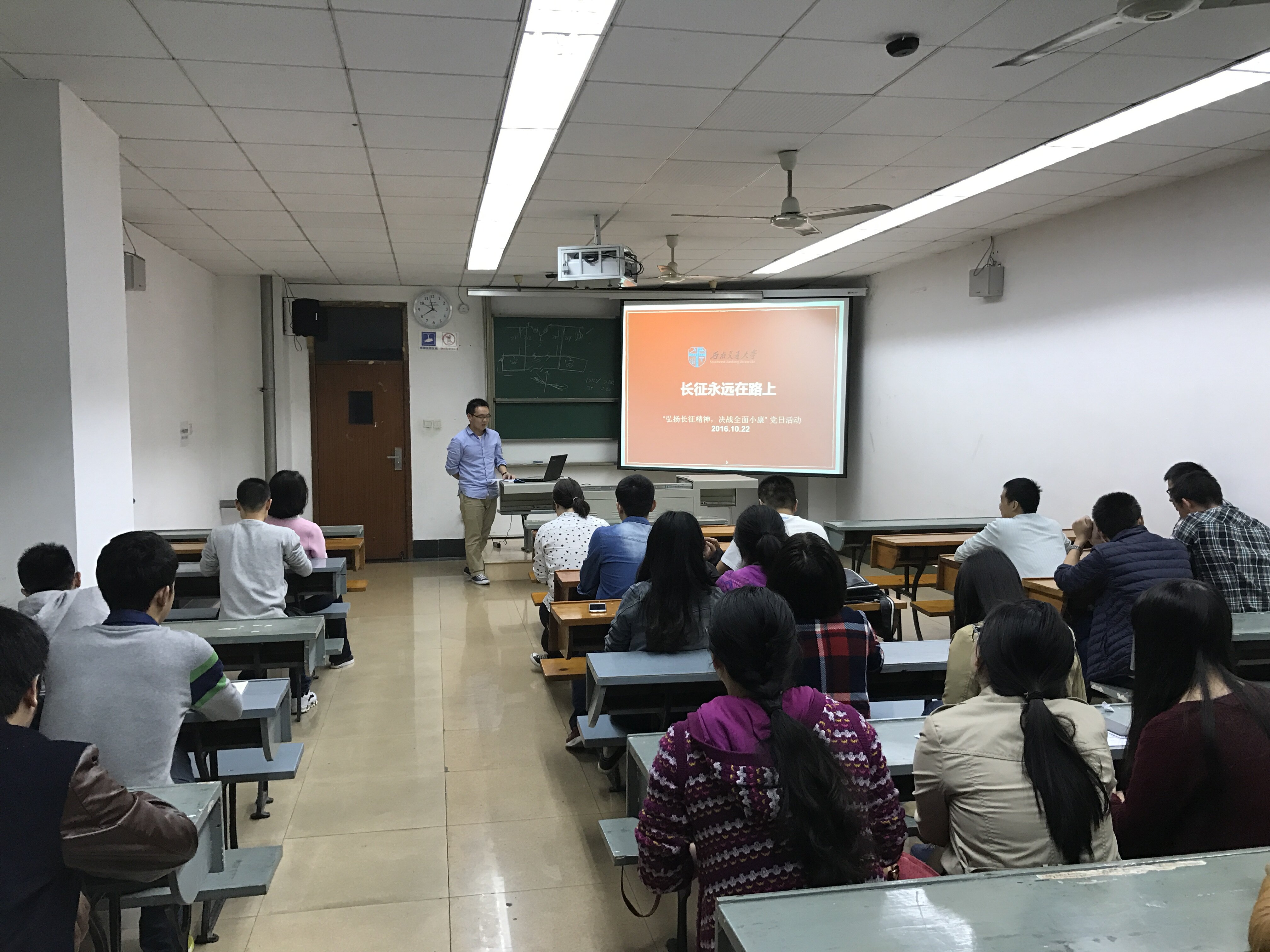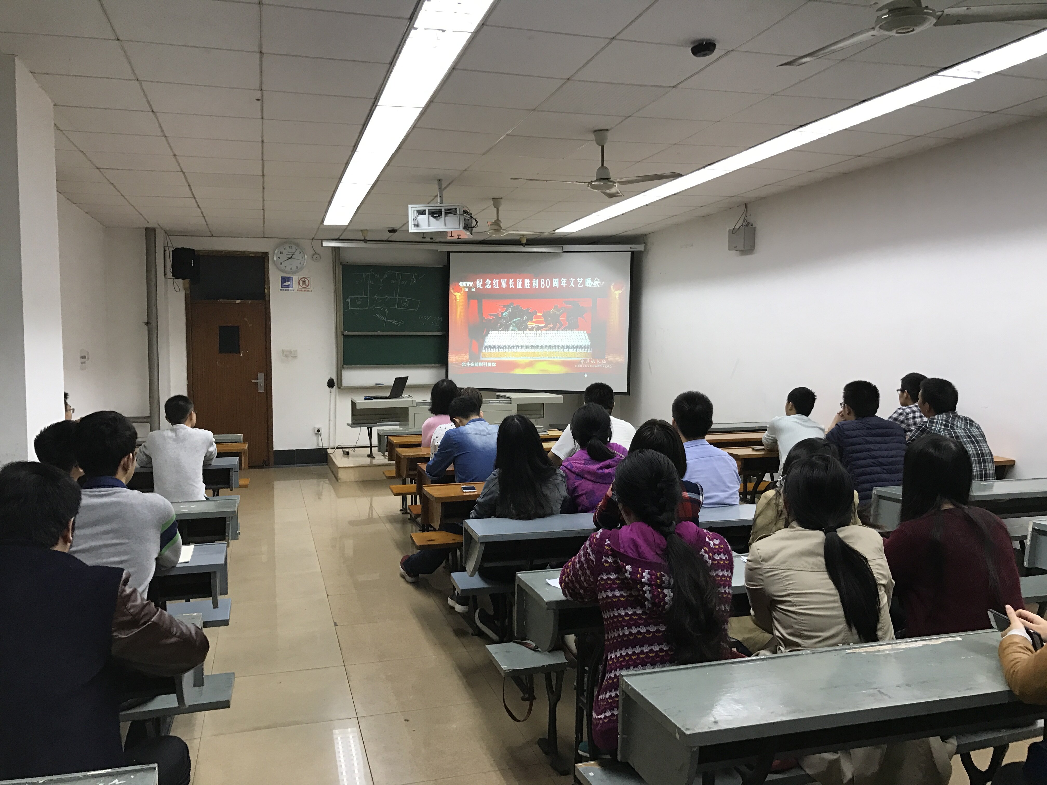 10月22日晚,伟德官网2014级硕士一班、二班党支部在逸夫馆4305B联合开展了“长征永远在路上——弘扬长征精神”党日活动,党日活动以观看《纪念红军长征胜利80周年文艺晚会》和学习《习近平在纪念红军长征胜利80周年大会上的讲话》的形式进行。活动由14级硕士2班党支部书记宋志磊主持,2014级研究生全体党员和入党积极分子参加。活动还特别邀请了公司党委李卓慧书记莅临指导。