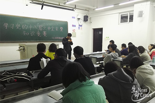 最后,全体同志均参与到关于十八届六中全会内容及精神的知识竞赛中。答题完毕后,由张佳美公布正确答案并加以解释说明,同志们在做题之时,也对党的相关精神有了深入的了解。