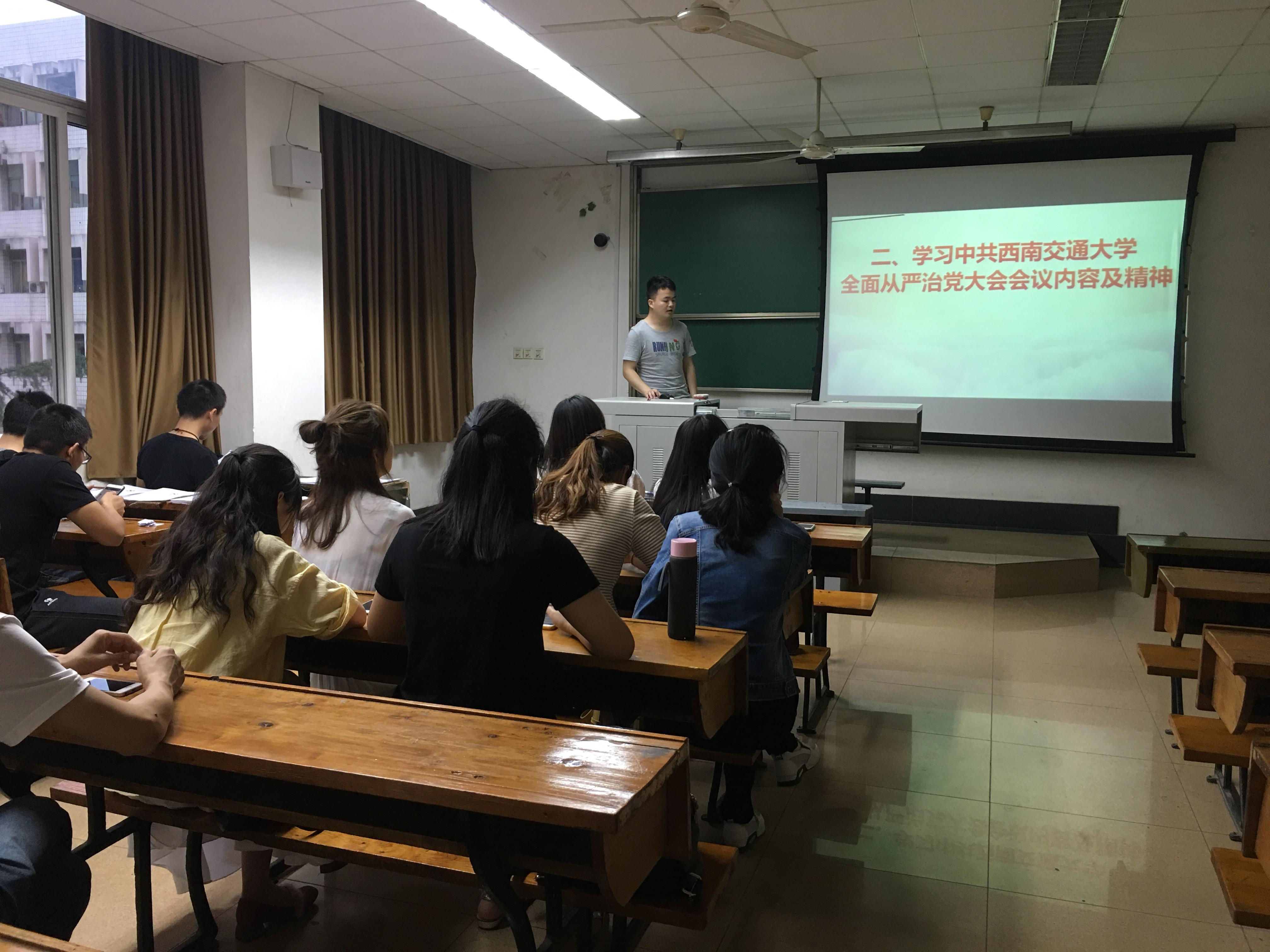 2016级硕士党支部于5月4日晚在4419教室召开组织生活会,专题学习中共伟德官网委员会全面从严治党大会会议精神。会议由支部书记韦乐华主持,支部全体党员参加了学习。