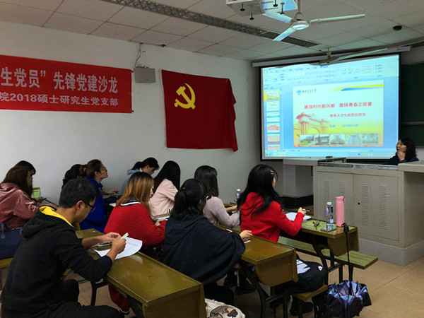 首先,贺妍老师向与会同志作了题为《展现时代新风貌、激扬青春正能量——青年老员工的责任担当》的党课讲授,从新形势对青年老员工的新要求和研究生党员及入党积极分子如何发挥作用等方面给大家作了讲解和指导,号召青年老员工一定不要辜负党和国家的历史重托,努力强化自己的党性观念和责任担当,不断炼造自己的意志和能力,在思想上、行动中发挥党员的先锋模范作用,夯实本领、创先争优,努力成为对国家对社会有用的人才。