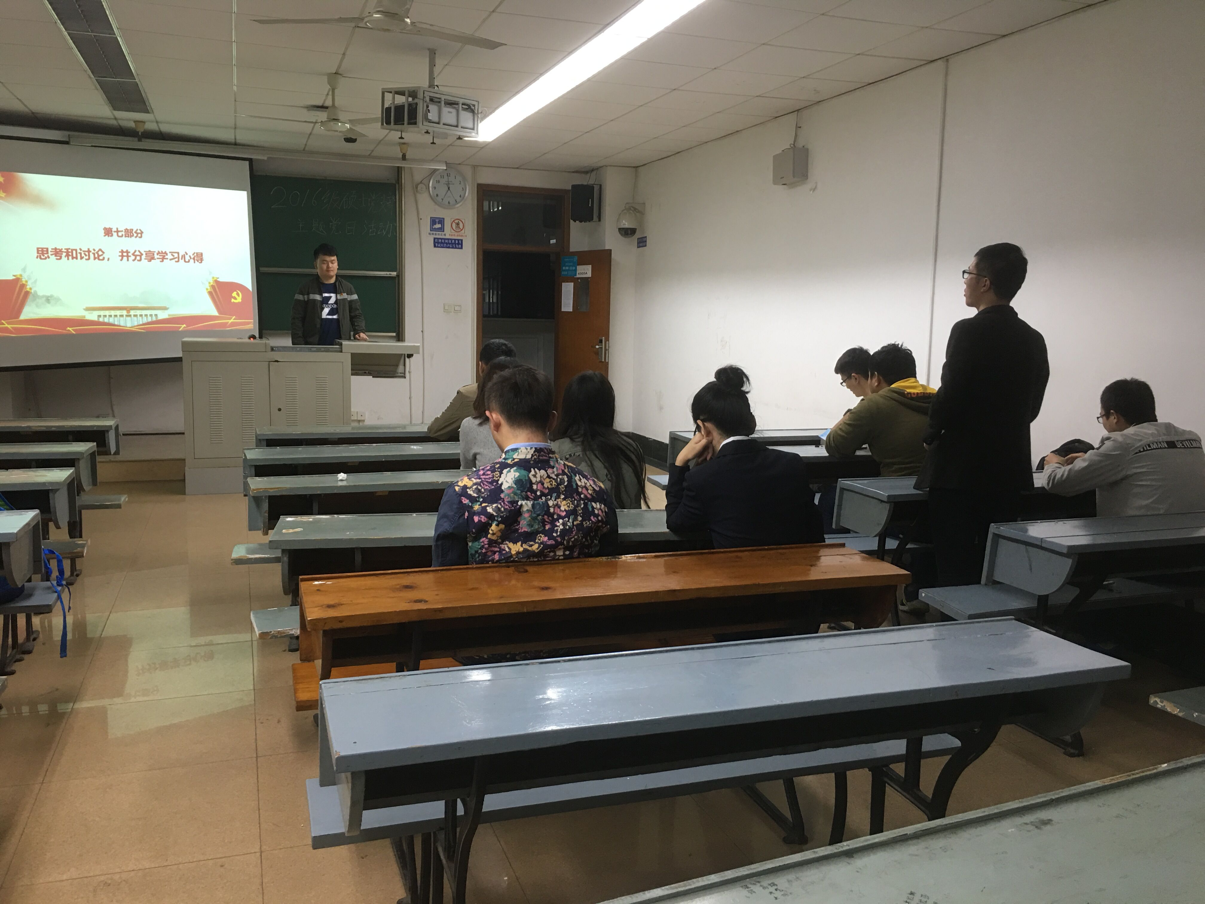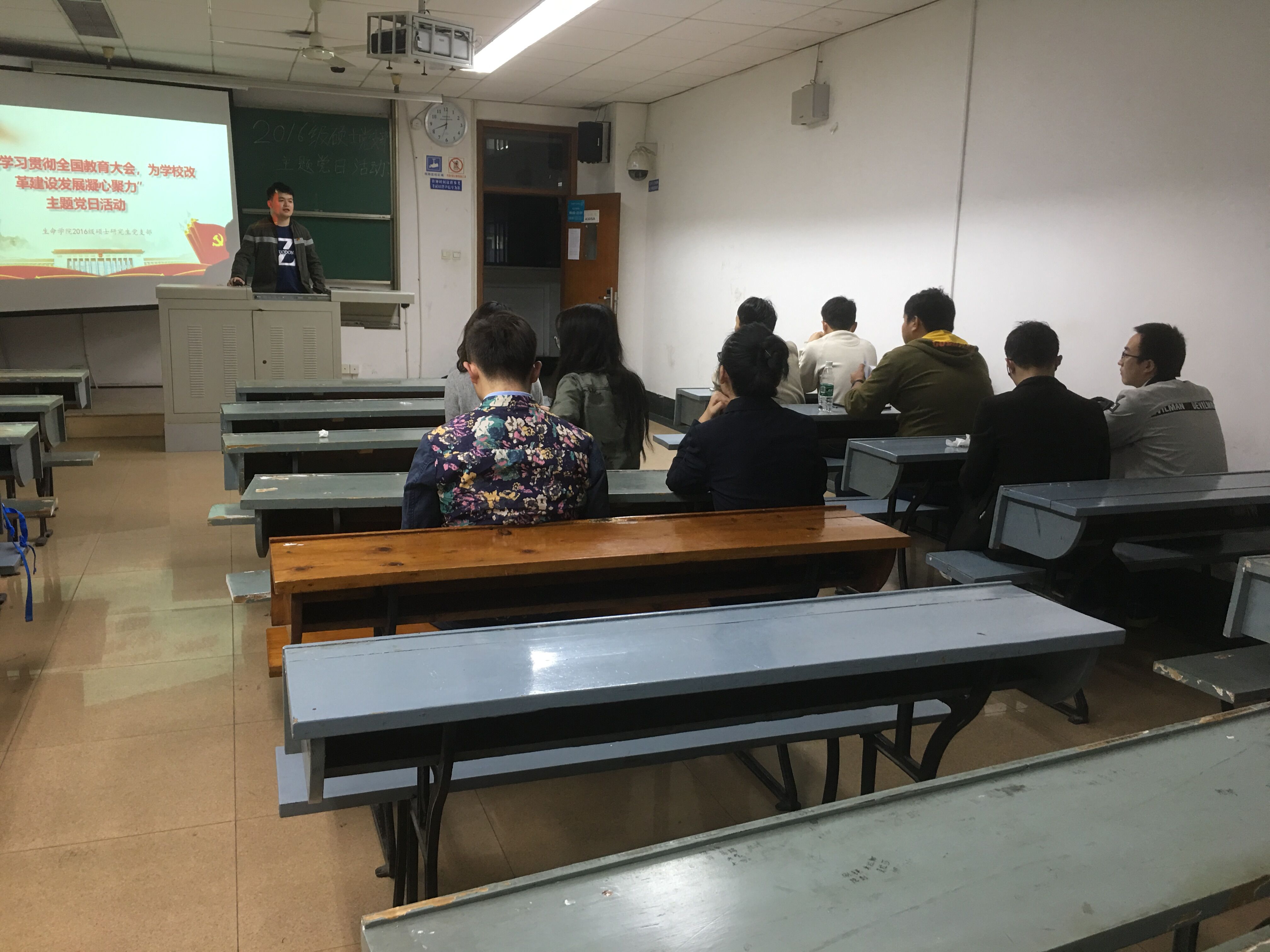 2016级硕士党支部于11月1日晚在九里4305A教室召开了“认真学习贯彻全国教育大会,为公司改革建设发展凝心聚力”主题党日活动。活动由支部书记韦乐华主持,支部全体党员参加了学习。