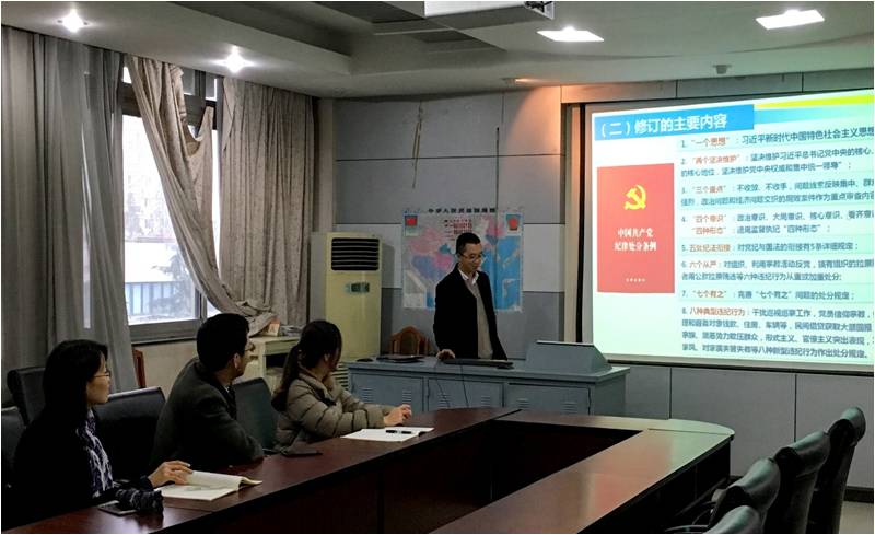 陈伟同志首先向与会同志传达了公司党委书记葛永明在公司党委会上重点强调的关于新修订的《中国共产党纪律处分条例》的学习领会及其贯彻落实,并以两起典型案例告诫全体党员筑牢思想防线、增强党规党纪意识,要知敬畏、存戒惧、守底线,自觉在受监督和约束的环境中工作和生活。