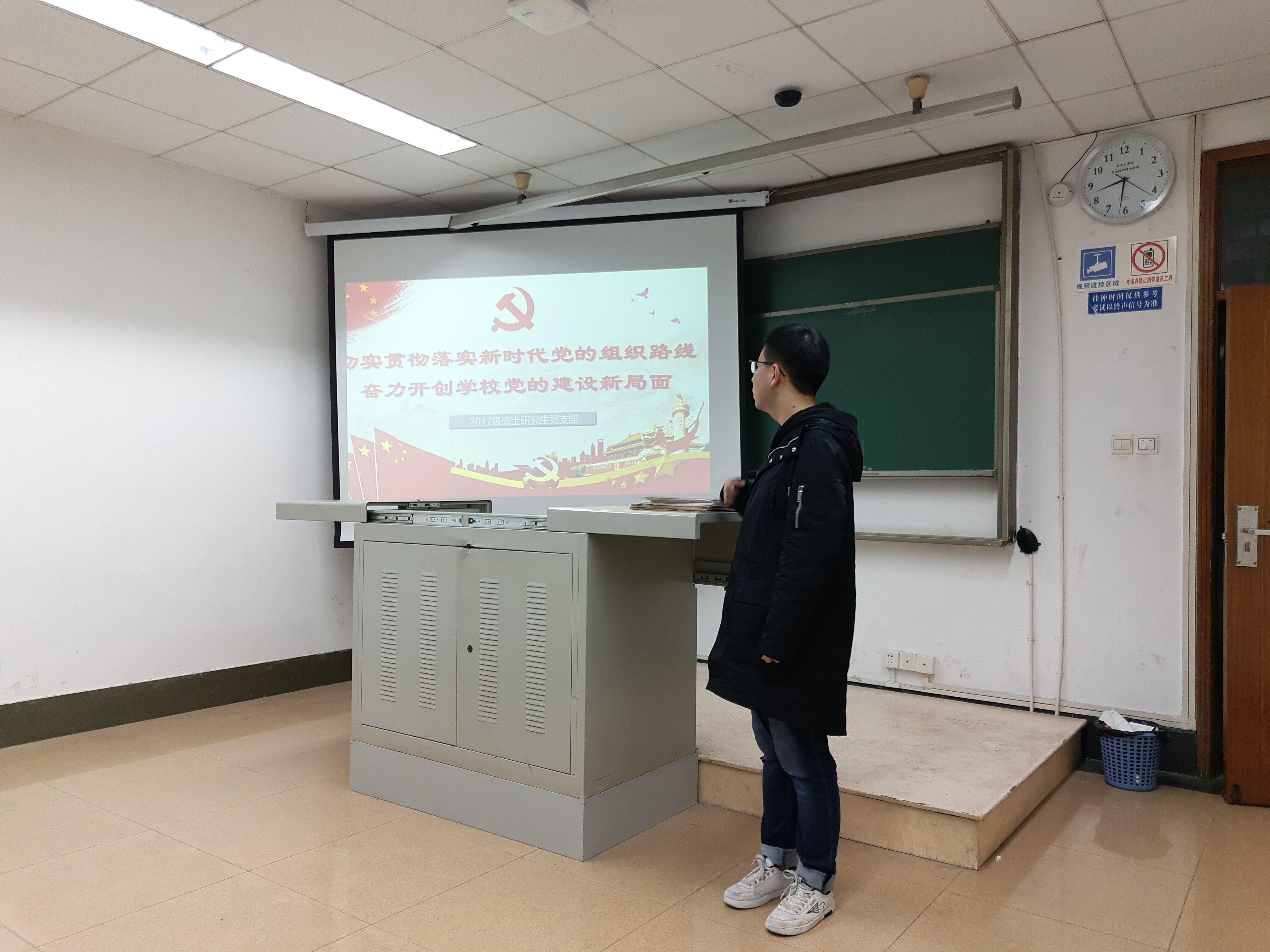 11月15日晚,2017级硕士研究生党支部于逸夫馆4305A教室召开“坚决贯彻党的组织路线,助力公司党建新局面”主题党日活动,此次活动在支部书记孙源同志的主持下召开,支部党员同志参加。