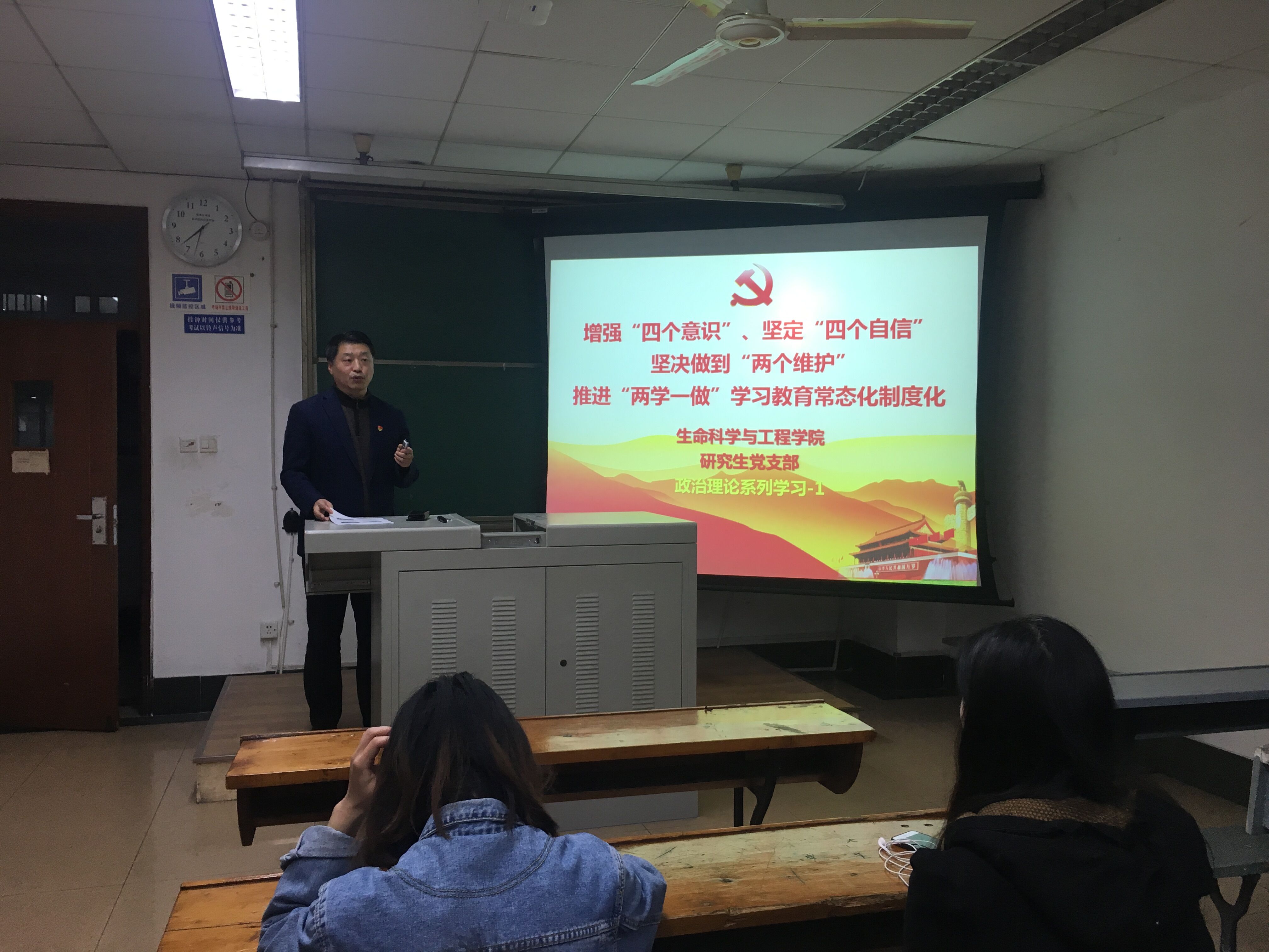 接下来由2018级党支部书记王珏同志带领与会人员学习《中共中央关于加强党的政治建设的意见》。王珏同志从《中共中央关于加强党的政治建设的意见》的总体要求和坚定政治信仰、坚持党的领导、提高政治能力、净化政治生态、强化组织实施五个板块进行了讲解。随后,由2017级党支部书记孙源同志带领与会人员学习《中国共产党重大事项请示报告条例》,全体党员了解了关于重大事项请示报告的相关规定。