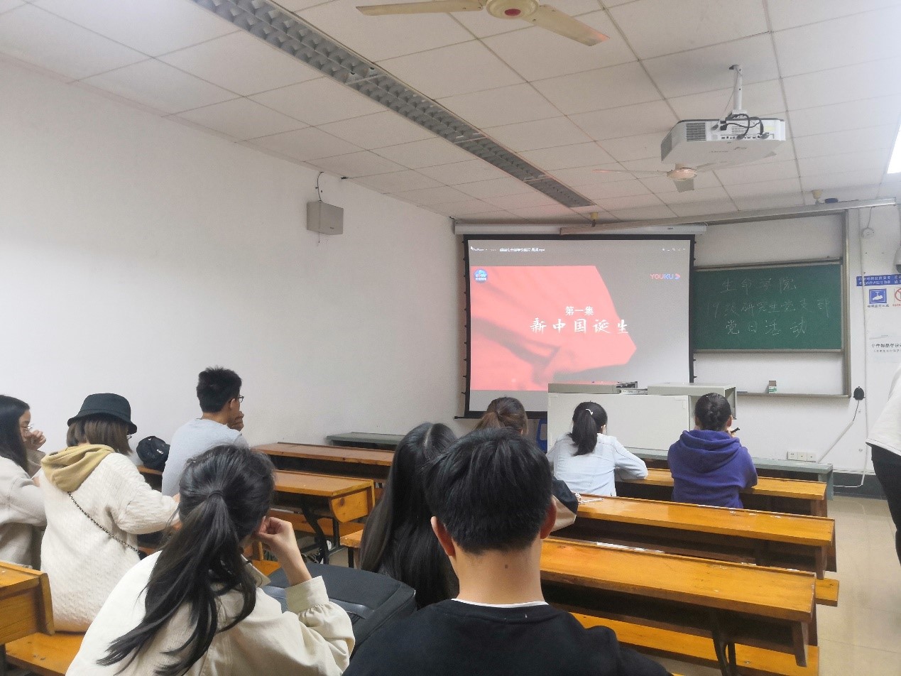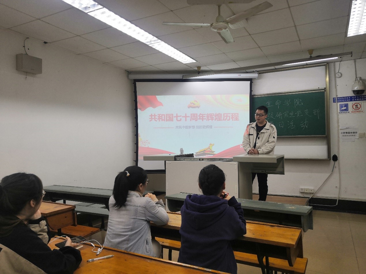 旗帜鲜红迎风飘扬,不知不觉间,这面鲜艳的五星红旗已经在共和国的上空飘扬了半个多世纪,在中华人民共和国成立70周年的今天,我们一遍遍回顾着感念着新中国成立的光辉历程,这段历史必将为每位中华儿女所铭记,这期间涌现出的光辉事迹,英雄人物,历史启示,也必将铭刻在每位中国人的心中。今天,也就是10月29日,伟德官网2019级研究生党支部在4304a教室展开了“回顾共和国70周年辉煌历程”的党日活动,活动由党支部书记吴京川同志主持。