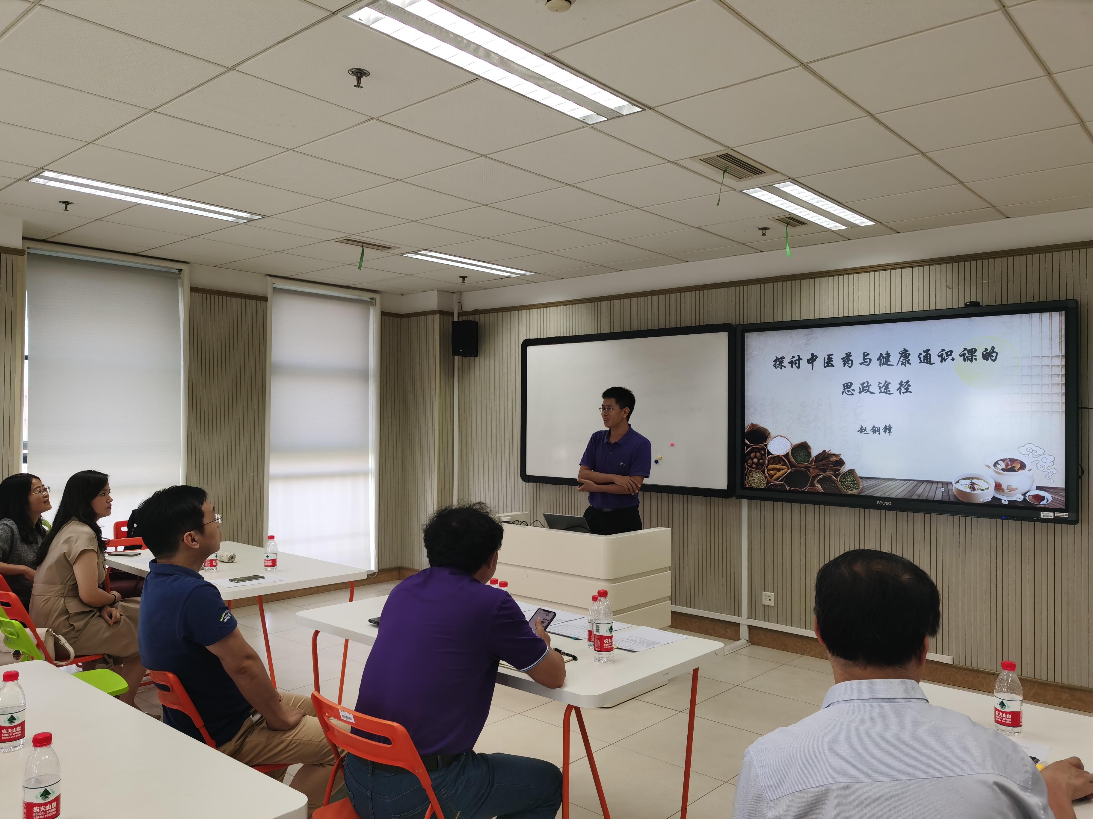 赵钢锋老师以“探讨《中医药与健康》通识课的思政途径”为主题,从实现中华民族伟大复兴的中国梦,到高校立德树人的根本任务,分析了课程思政的重要性,又结合公司专业专业的特色,从思想、文化、方法、情怀等四个方面阐释了《中医药与健康》通识课程的课程思政实践。