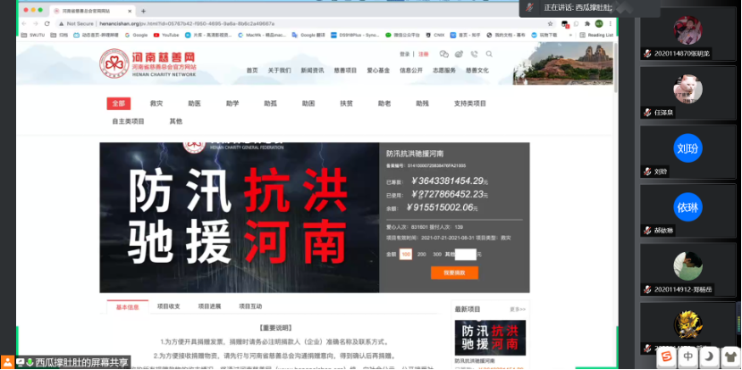 7月30日下午4时,为进一步加强党性,传承红色基因,伟德官网本科生物工程党支部组织支部党员、发展对象及积极分子开展了主题为“知党史 强党性 铭党恩 兴党业”的线上学习会议,旨在分享先进党员事迹,并以实际行动驰援河南。本次学习会由曾旭东同志主持。