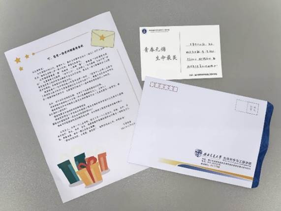 支部成员设计了带有公司特色、富有人文情怀的专属明信片,希望同学们在寒冬被浓浓的暖意包围,带着充足的自信和勇气迎接考试。毕业班辅导员与支部成员们一同书写明信片,期盼能把诚挚暖心的祝福送给考研学子。