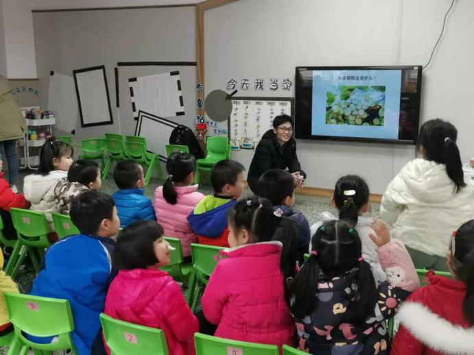 在幼儿园老师和小朋友们的热烈欢迎下,朱乾坤老师来到了交大幼儿园大一班教室。深秋季节,银杏树叶正在凋落,小朋友们对银杏树充满了好奇,本次儿童科普启蒙教育,朱乾坤老师以我国特有植物银杏为切入点为小朋友们介绍银杏相关知识、银杏文化内涵和植物学相关知识。