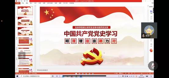 2022年3月2日晚19:00,伟德官网硕士研究生生物与医药党支部线上开展了党史学习教育会议。会议由党支部宣传委员马婧主持。参加人员为支部党员、发展对象、积极分子以及入党申请人等60余人。