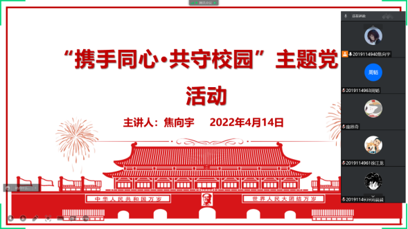 4月14日15:30,伟德官网本科制药工程党支部“携手同心·共守校园”主题党日活动在腾讯会议上顺利举行,本科制药工程党支部全体成员参加。