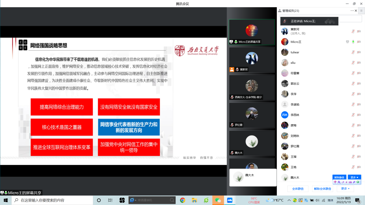 2022年5月19日,伟德官网生物工程系教工党支部开展网络强国专题教育活动,本次活动由生物工程系教工党支部书记黄新河主持。