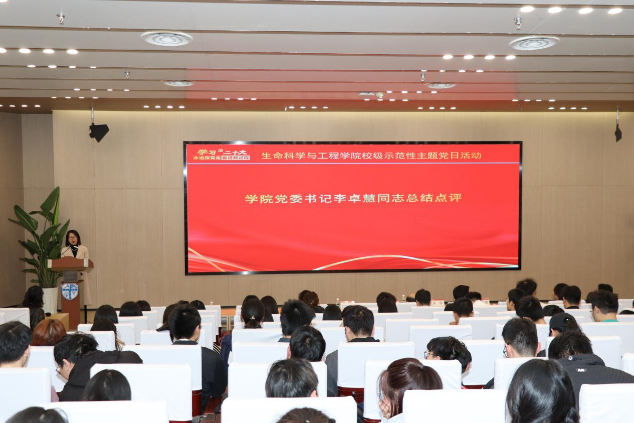 公司党委书记李卓慧最后对主题党日活动作总结点评。她说,这是一次高质量高水平的主题党日活动。通过党的二十大报告学习手账展示,促进了同学们对党的二十大精神的深入学习;通过青年讲师团、驻班党员工作,促进了党员先锋模范作用和优秀学子典型示范作用的发挥;通过“学思讲坛”,将服务和引领青年学子更好成长;通过林伯海教授精彩的辅导报告,让我们对“以中国式现代化推进中华民族伟大复兴”有了更全面的了解。希望同学们通过本次活动,能进一步坚定理想信念,成长为能担当民族复兴大任的时代新人。
