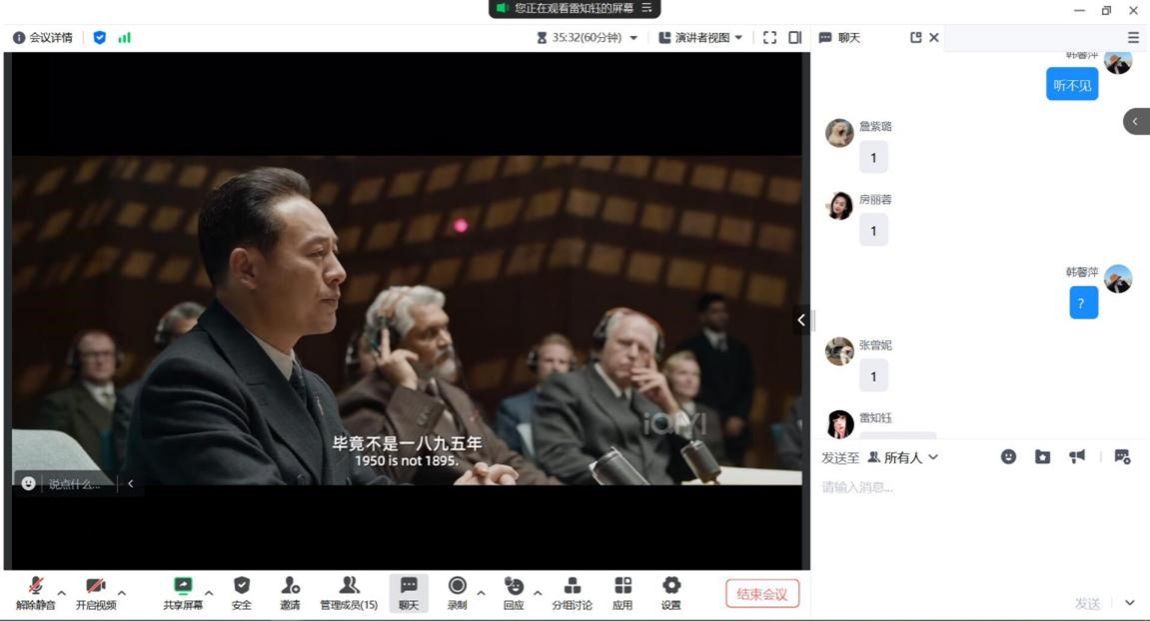 在抗美援朝战争胜利70周年之际,为致敬英烈、铭记历史、传承红色精神,2023年10月21日,伟德官网研究生会组织观看爱国主义影片《志愿军:雄兵出击》,研会全体成员参加线上观影活动。