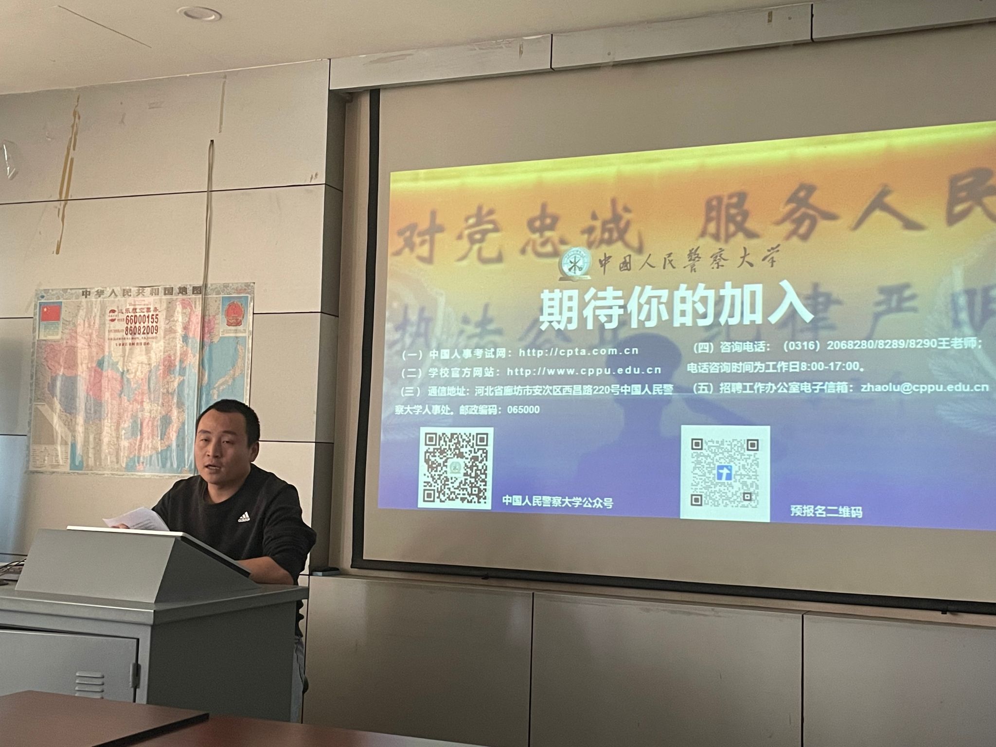 12月4日下午,中国人民警察大学员工中队教导员李峰老师和中国人民警察大学侦查公司综合办吴盾老师一行来公司开展专场招聘宣讲会,公司经理助理华晶晶老师、生物工程系刘新荣老师和三十余名博士参加了此次会议,会议由公司研究生就业负责人杨颖增老师主持。