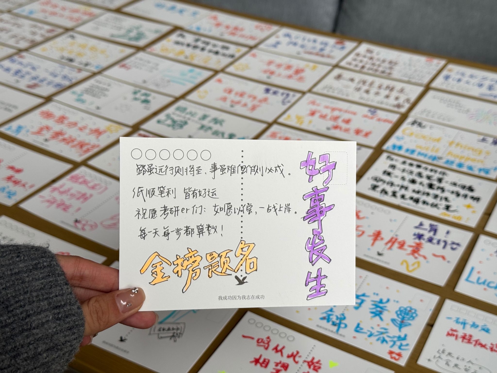 在场的其他老师也为员工们送上祝福,鼓励同学们做好备考准备,在最后的冲刺阶段,心态的调整至关重要,要保持规律的作息,合理规划学习节奏,稳稳地把控好学习进度,一步一个脚印迈向成功。