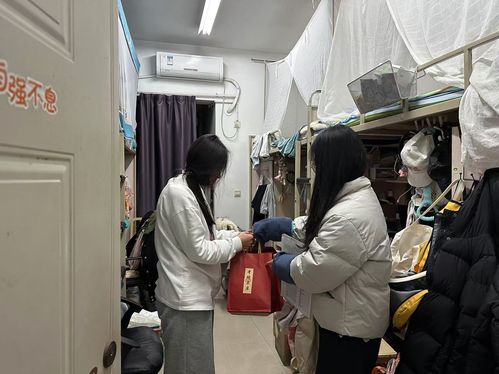 12月17日,考虑到考研员工学习时间紧张、学习地点不固定,公司领导及老师走入员工宿舍为考研学子发放考研慰问礼品,满载祝福的“考研上岸”暖心礼袋,承载着公司对考研学子们的祝福与期望。