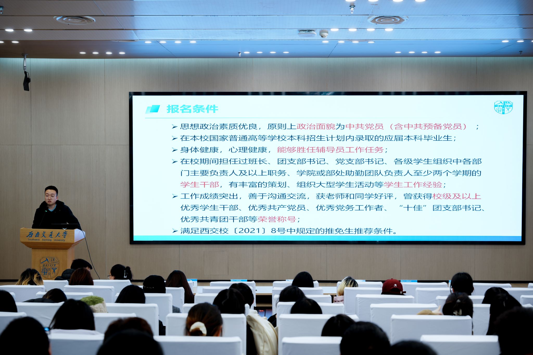 为帮助同学们更好地规划职业发展路径,明晰奋斗目标,12月18日晚,伟德官网学思讲坛暨本科2022级职业规划指导会在图书馆二号报告厅顺利举行。本次活动由公司员工工作组和“学思”辅导员工作室联合承办,公司团委书记杨颖增老师及2022级全体本科生参会,本科生2022级辅导员潘星宇老师主持会议。