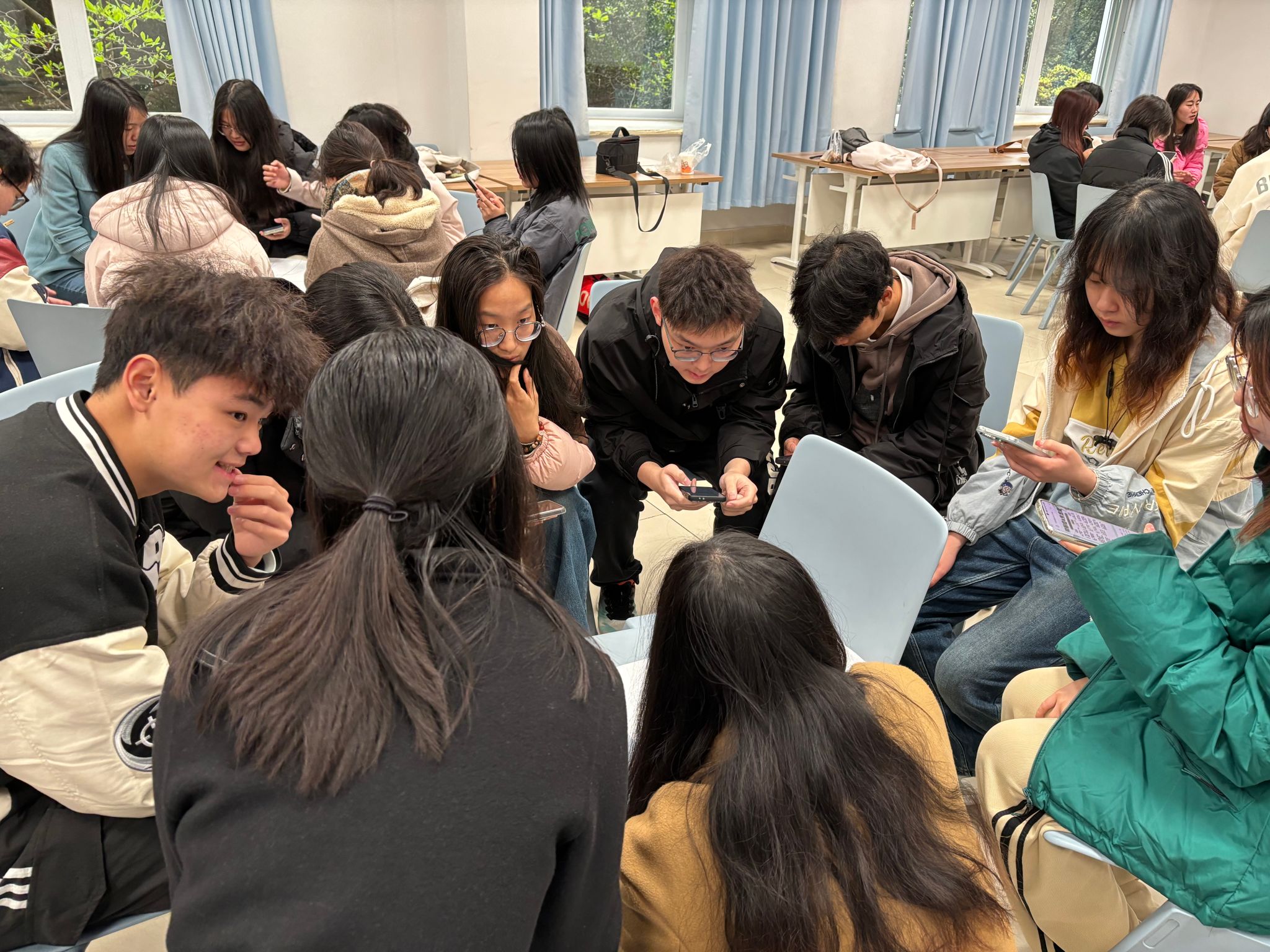 冉老师首先进行了简短而精彩的自我介绍,随后她巧妙地引导同学们进入了第一个互动活动——“大风车”游戏。这个游戏不仅趣味十足,更是蕴含着团队协作与沟通的深意。在这个过程中,同学们积极参与,现场笑声不断,气氛瞬间活跃起来。