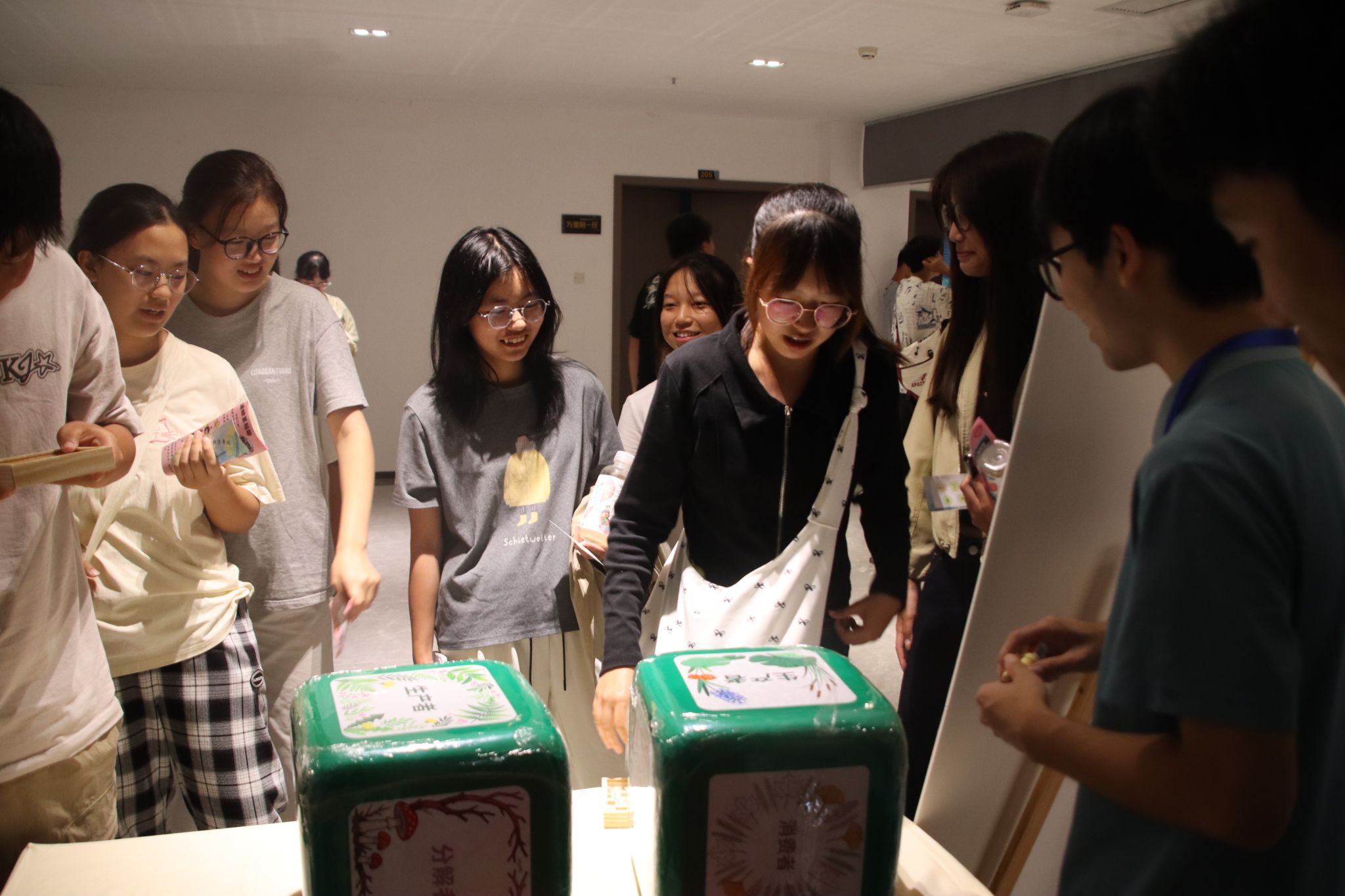 为打造高质量活动体验,各团学组织提前三个月启动筹备,依托生命科学专业特色与自身优势,精心设计了一系列独具特色的互动摊位,成为游园会中的“亮点打卡地”。在“植物套圈”摊位,同学们通过趣味游戏认识植物外观特征,成功套圈即可获得相应植物;在“生态骰子”区域,参与者通过投掷特制骰子快速回答生态角色及其典型生物,欢呼声此起彼伏;“中草药香囊制作”让同学们亲手挑选药材制作香包,在动手过程中了解中草药的形态特征与药理作用;“粘土细胞工坊”则通过用彩色粘土还原细胞结构,考验大家的专业知识与细致操作;“碱基配对挑战”将抽象DNA知识具象化,参与者用彩色粘土球快速完成碱基配对;而“细胞物流大师”通过平衡操作运送“物质”小球,让同学们对细胞物质运输过程有了更直观的理解。各摊位集趣味性与知识性于一体,充分激发了同学们的参与热情。