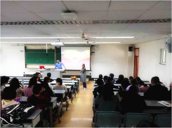 何教官首先为大家详细解读了《高等公司消防安全管理规定》,其中包括总则、消防安全责任、消防安全管理、消防安全检查和整改、消防安全教育和培训、灭火、应急疏散预案和演练、消防经费、奖惩和附则等主要内容。何教官作为成都市消防宣传中心人员,具有多年的火灾预防工作经验,他通过一些实例形象生动地诠释了每一条规定,使同学们更加容易理解,对火灾的危害感同身受,也让同学们切身体会到实验室安全对于研究生阶段学习的重要性。大家深深认识到实验室火灾的预防不仅是老师或公司的事,更多是同学们自己的事,与同学们自身的安全紧密相连、不容忽视。接下来,何教官又亲自为同学们演示了使用灭火器的步骤和要领,即首先提起灭火器,然后拔掉保险栓,接着握住喷管对准着火点,最后用大拇指向下压开关等。讲座的最后环节,何教官邀请了部分同学上台现场使用灭火器并进行指教。