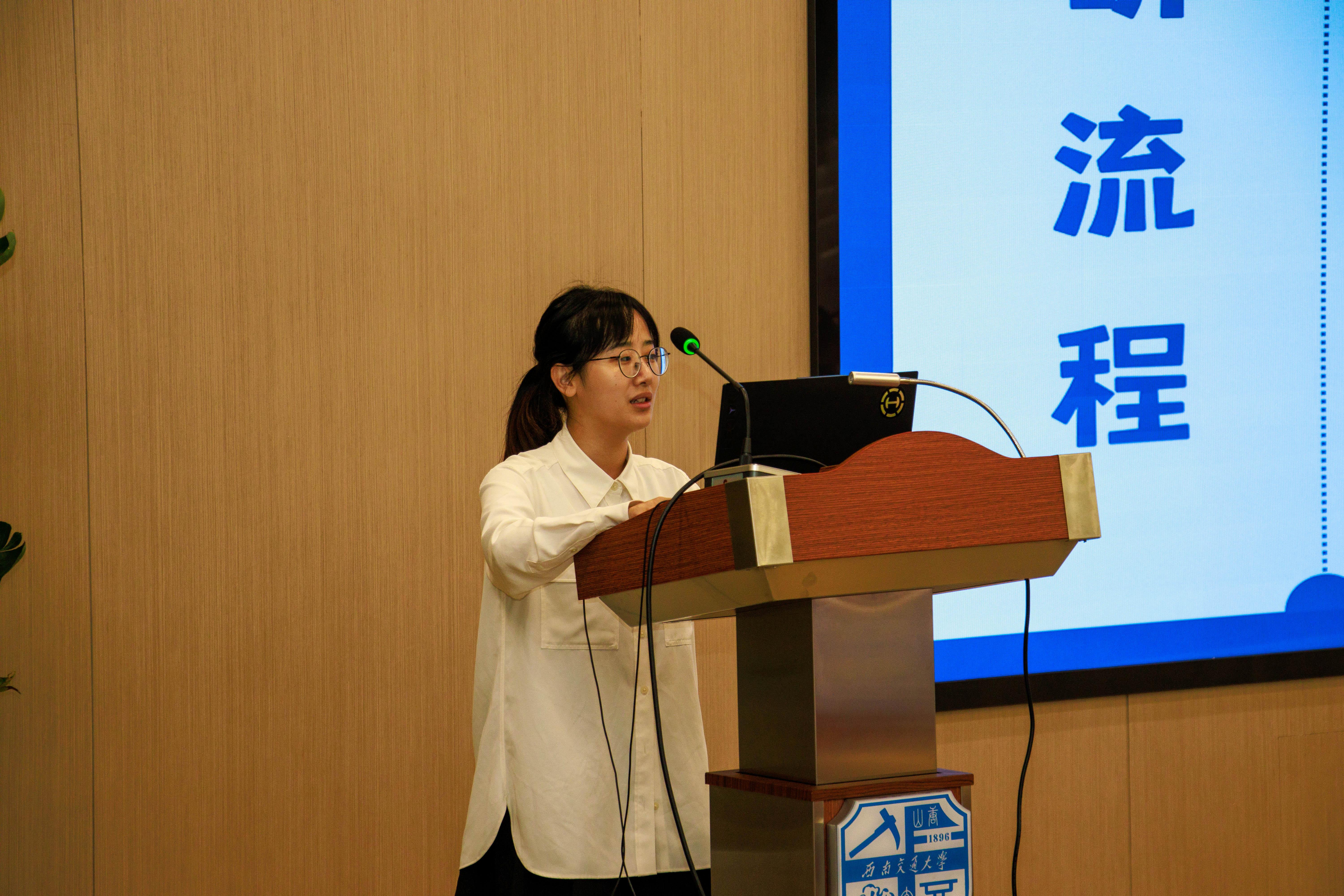 三位同学依次上台为同学们分享自己的考研之路,刘俊男在回顾自己的备考历程时建议同学们要慎重做好择校工作,制定适合自己的备考计划,并且要有具体可行的目标;田星怡短短三个月的备考过程是艰辛曲折的,但她告诉同学们在坚定理想与脚踏实地中一定会逐渐看到希望,她建议同学们要通过各种模拟考试和真题练习,熟悉考试的环境和流程;陈中炜特别强调在遇到各种压力和困难时要不断调整自己的备考计划和心态来保持学习效率。