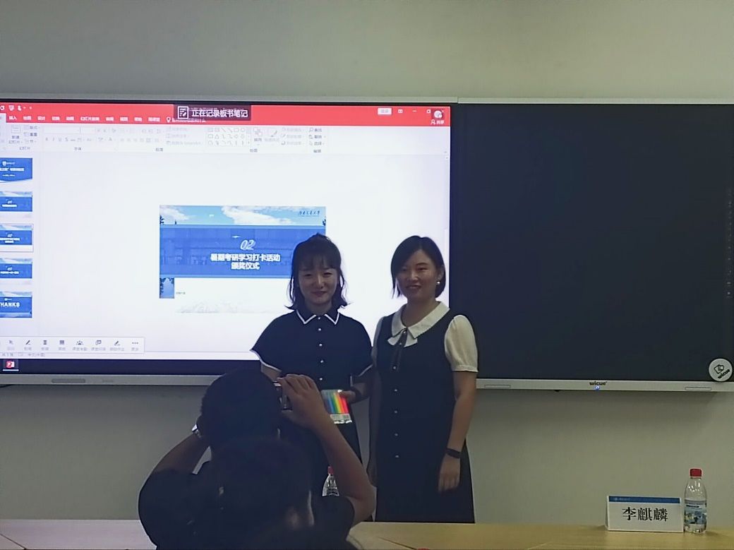 讲解完成后举行了暑假考研打卡活动的颁奖仪式,自暑假开始,历时两个月的线上学习打卡活动旨在督促考研同学学习进度,互相鼓励,互相促进。由中公教育廖瑞董事长、伟德官网高鹏老师和李麒麟老师为参加训练营并坚持每日打卡学习的同学颁奖。