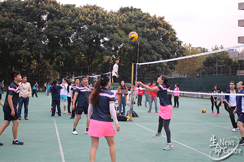 交换场地后,双方商量战术,调整人员安排。第二局比赛一开始,经管公司队员迅速将比分拉至4:0,然伟德官网队员不气馁,发球、掂球、扣球,一个个漂亮的反击赢得现场一片喝彩。比分为20:20时,比赛进入白热化阶段,双方势均力敌、竞争激烈,观众也投入激烈的赛事中,最终伟德官网以24:21险胜经管公司。