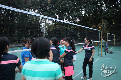 17:30,双方队员在裁判的哨令下,展开激烈的争夺。首局比赛十分精彩,场上好球、妙球迭出。公司女排队率先发球并拿下第一分,附中教职工队也不甘示弱,接连得分,取得了一定优势。面对己方的劣势,本院队员并没有气馁,她们努力守好自己的位置并积极进攻,慢慢扳回比分。场上比赛十分胶着,双方比分不断、交替上升。最终,伟德官网队以25:23的微弱优势取得第一局的胜利。