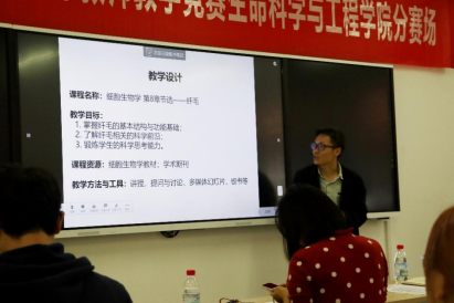 参赛青年教师需要在规定的20分钟时间里呈现课堂,该环节精彩纷呈,参赛教师从教学目的、教学思路、语言表达、教学方法等环节,多方面立体式的将平时的教学积累进行了展示。