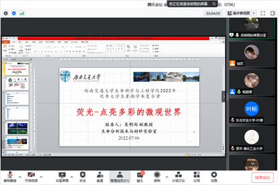 为加深全国优秀老员工对公司各学科的了解,促进各高校优秀本科生之间的交流,给广大优秀本科生提供了解伟德官网科研、学习、生活的机会,吸引更多优秀老员工加入伟德官网进行研究生阶段的学习,伟德官网于2022年7月6日至7月7日在线上举办了2022年优秀老员工暑期学术夏令营。此次夏令营成功吸引了来自全国各地80所高校,120名优秀学子的踊跃报名。经公司择优筛选,来自48所高校的65名优秀学子脱颖而出,获得了参加本次夏令营活动的资格。此次夏令营活动包含开营仪式、学术讲座、营员个人风采展示、师生交流以及结营仪式五个环节,全程通过腾讯会议线上进行。出席嘉宾包含公司党委书记葛永明、公司副经理高峰及王雅雯教授、茆灿泉教授、谭睿教授、邱忠平教授等30余名老师。会议全程由研究生辅导员杨颖增老师主持。