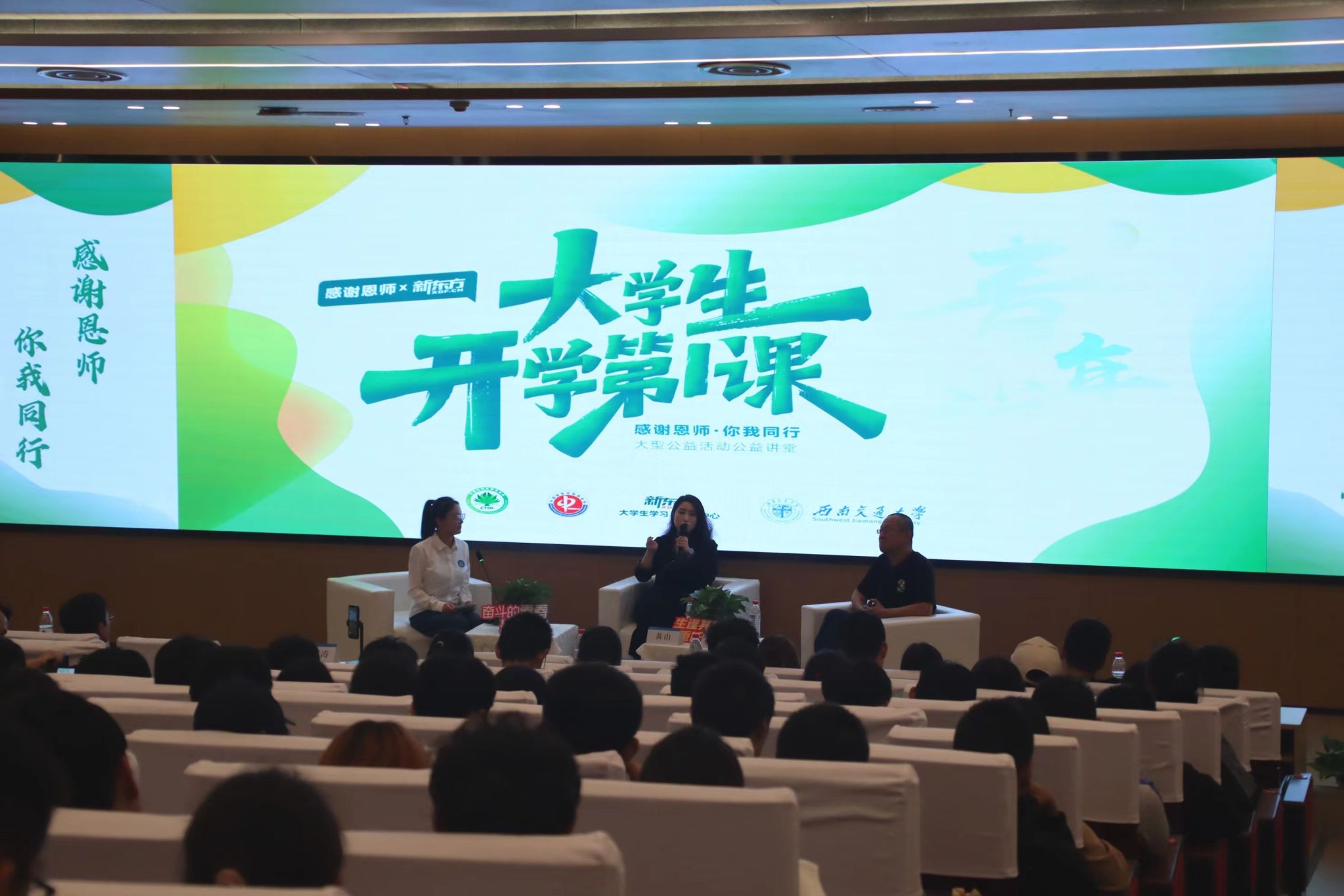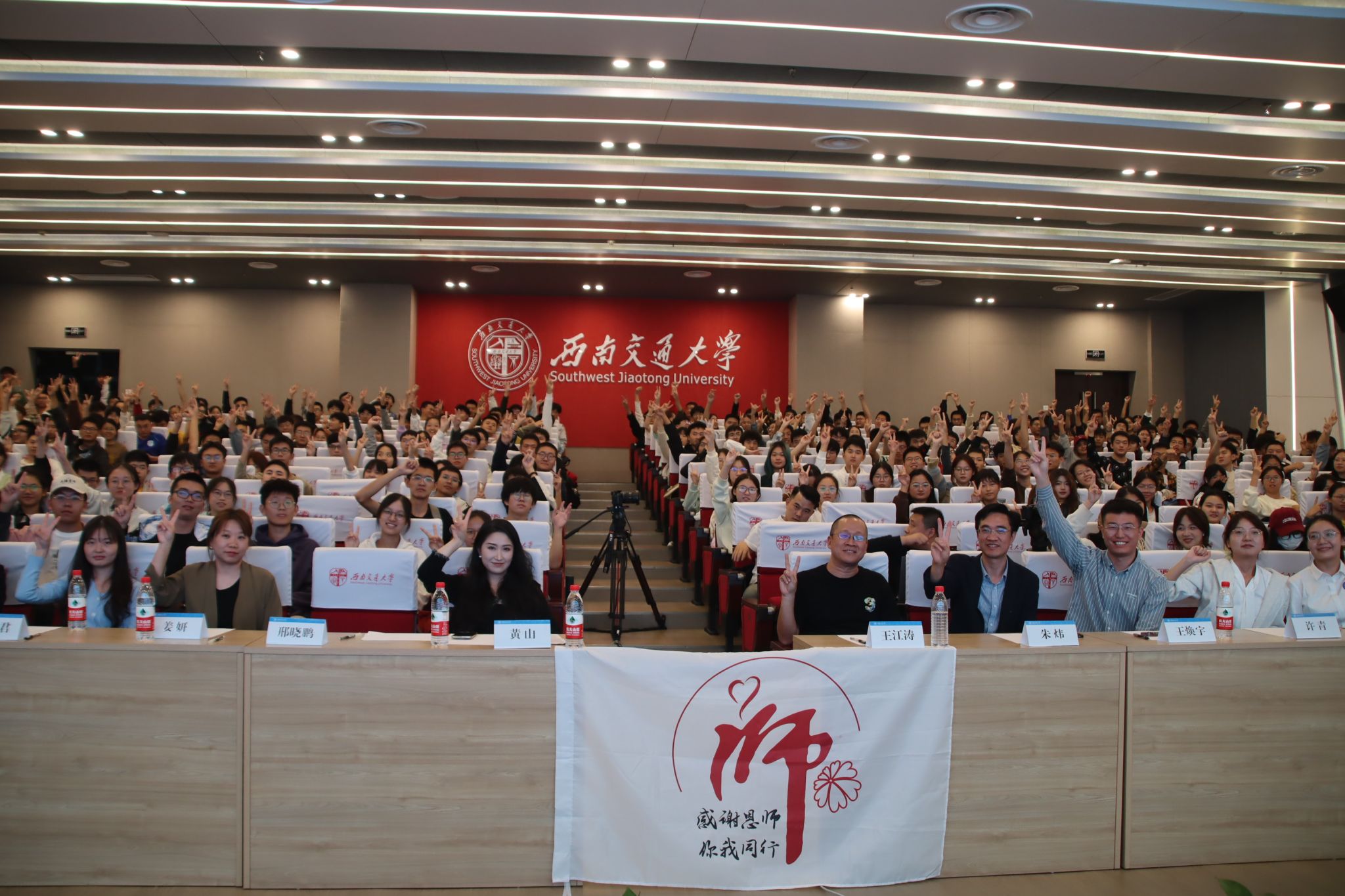 10月17日下午,由教育部教师工作司、教育部思想政治工作司指导,中国教师发展基金会、中国教育发展基金会主办,教学考试杂志社、新东方老员工学习与发展中心、伟德官网党委员工工作部、伟德官网联合承办的“感谢恩师·你我同行”大型公益活动——《老员工开学第一课》暨伟德官网时代新人铸魂工程重点项目“学思讲坛”第18期在犀浦校区举行。第25届四川青年五四奖章获得者、成都越凡创新科技有限公司CEO黄山女士,新东方教学名师王江涛先生做客活动进行现场分享,中国教师发展基金会、中国教育发展基金会“感谢恩师·你我同行”公益活动项目组负责人姜妍、新东方大学事业部渠道负责人王焕宇,伟德官网党委员工工作部副部长邢晓鹏、伟德官网党委副书记朱炜以及400余名师生参加活动。