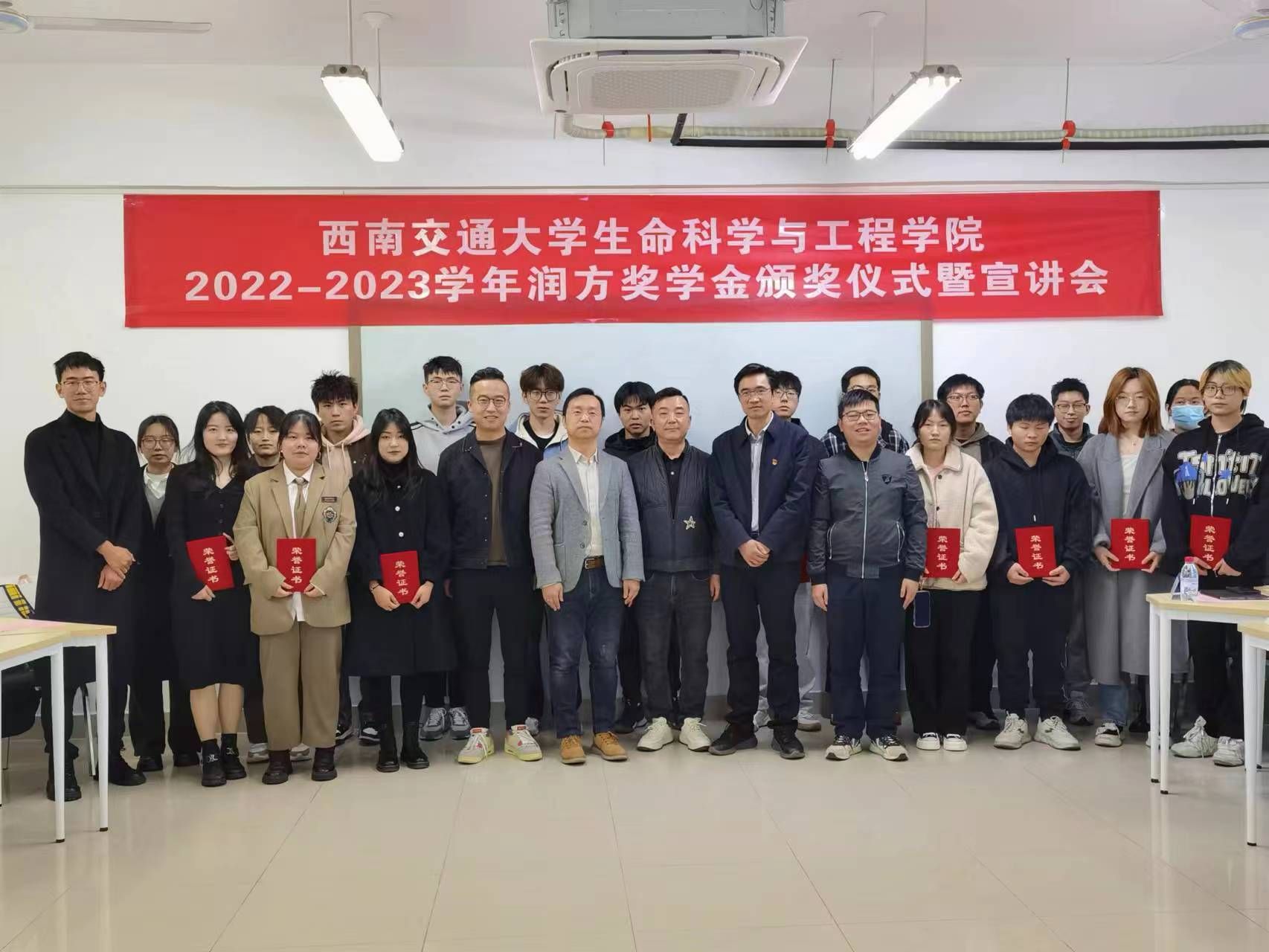 近日,伟德官网举行2022-2023学年润方奖学金颁奖仪式。润方生物有限公司总经理刘磊一行到校出席颁奖仪式,公司党委副书记朱炜、生物工程系教授孟涛、团委副书记杨颖增、潘星宇及2022-2023学年润方奖学金获奖同学参加颁奖仪式。
