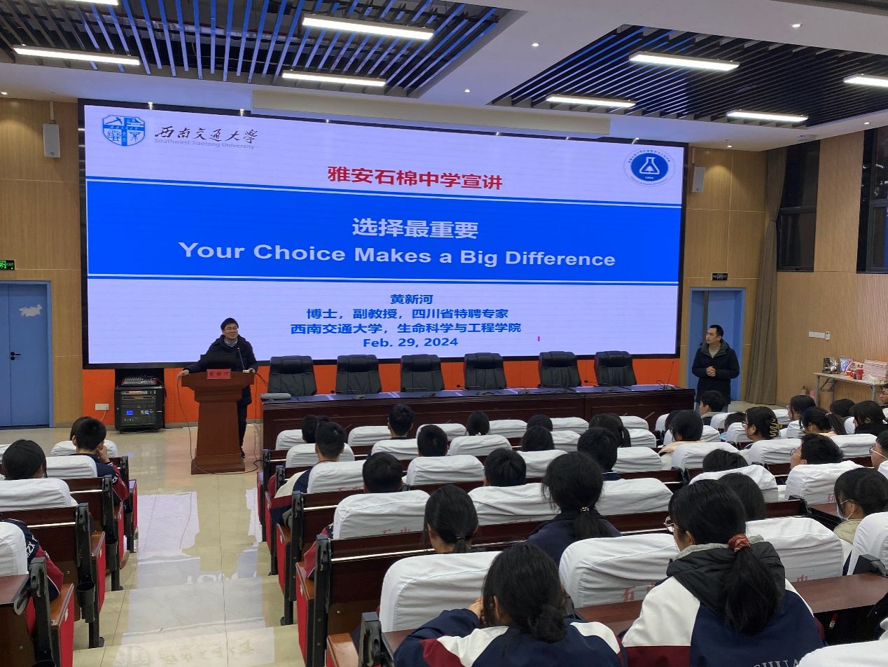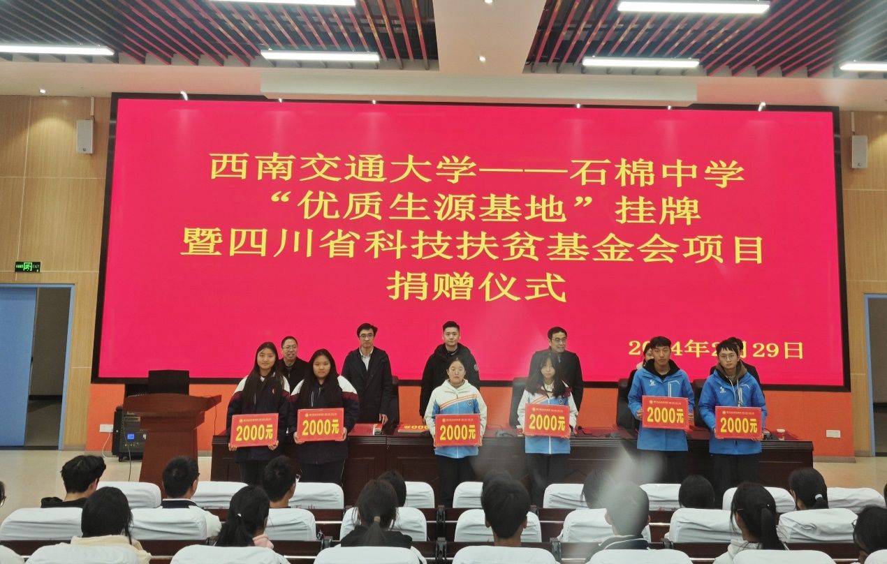 在仪式上,伟德官网为石棉县中学授牌“优质生源基地”,四川省科技扶贫基金会为石棉中学的50名高中生捐赠10万元“寒门学子大学梦”项目助学金,黄新河副教授以《选择最重要》为题为石棉中学200余名高中学子开展专题报告,伟德官网4名实践队员分别深入高三班级开展招生宣讲、高考辅导和咨询答疑活动。