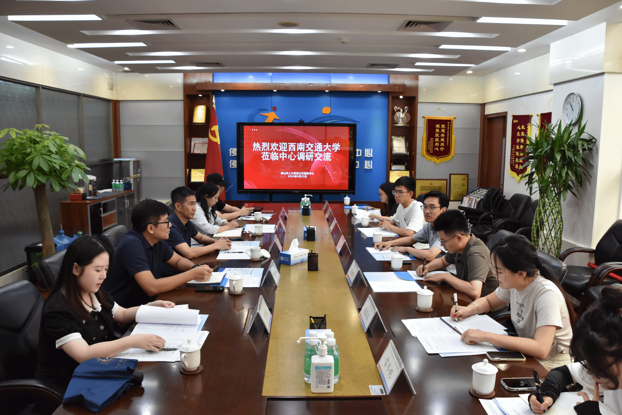 6月25日上午,公司师生来到佛山市人力资源公共服务中心,在中心副主任王强、人力资源市场部部长陈洪、副部长梁进宇等人的陪同下参观了公共服务大厅,并进行了座谈交流。王强副主任详细介绍了佛山市“一市五区”智能化人力资源市场的运行情况,公共就业服务和智能化招聘的“佛山经验”,以及佛山市人才引育政策、人才服务模式。朱炜副书记就伟德官网、伟德官网人才培养情况作了介绍,并热情邀请佛山市人才中心携企业来伟德官网选聘毕业生。