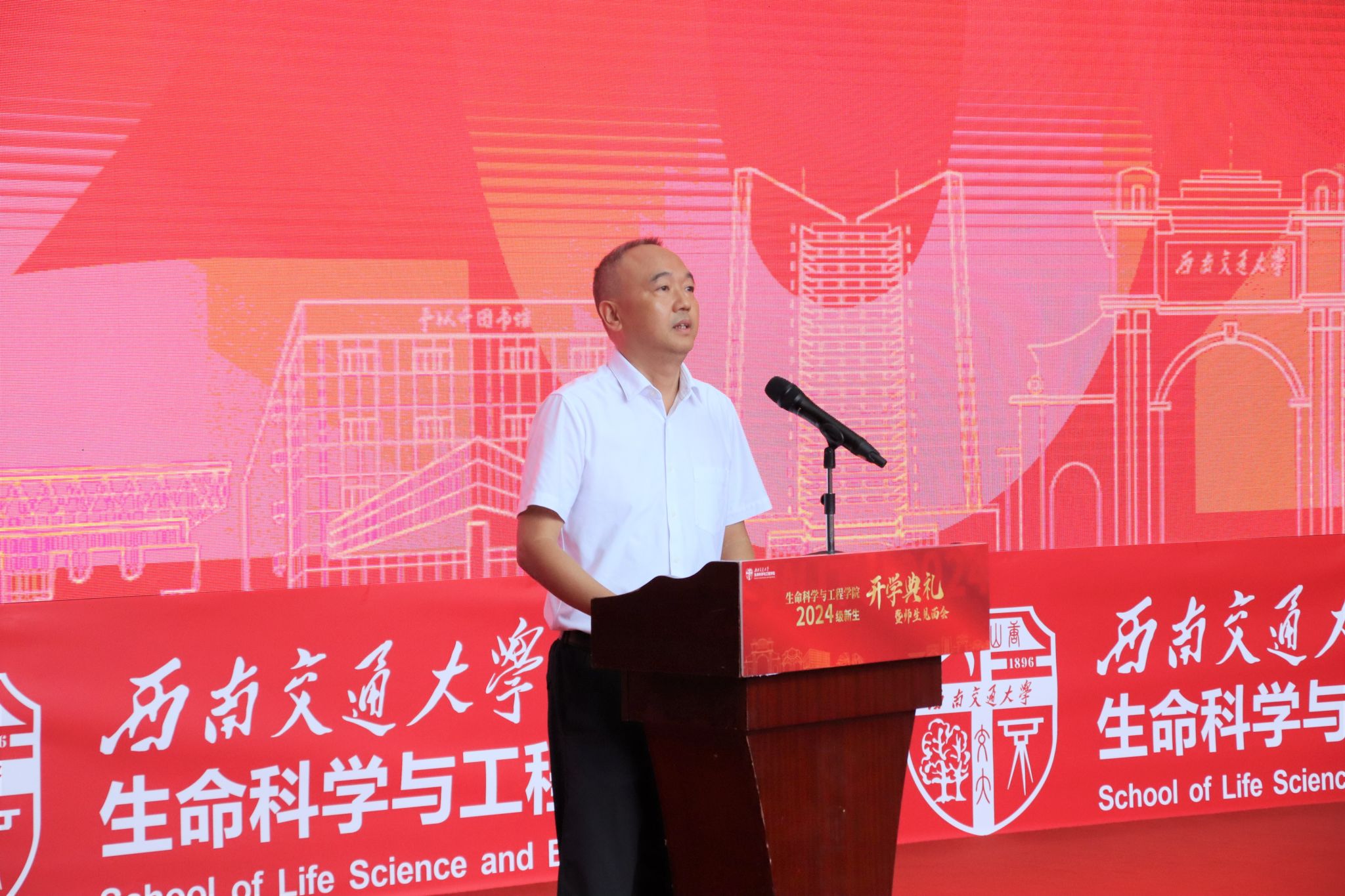 2024级新生班导师、研究生导师王垚磊副教授作为教师代表发言,他引用马克思、楚庄王的故事引导同学们要志存高远,立志成为对社会有用的人,同时能够甘于寂寞、远离浮躁,培养不怕困难、矢志不渝追求真理的决心和勇气,处理好“为学”与“为人”之间的关系,培养健全人格,不断提升做人的境界。