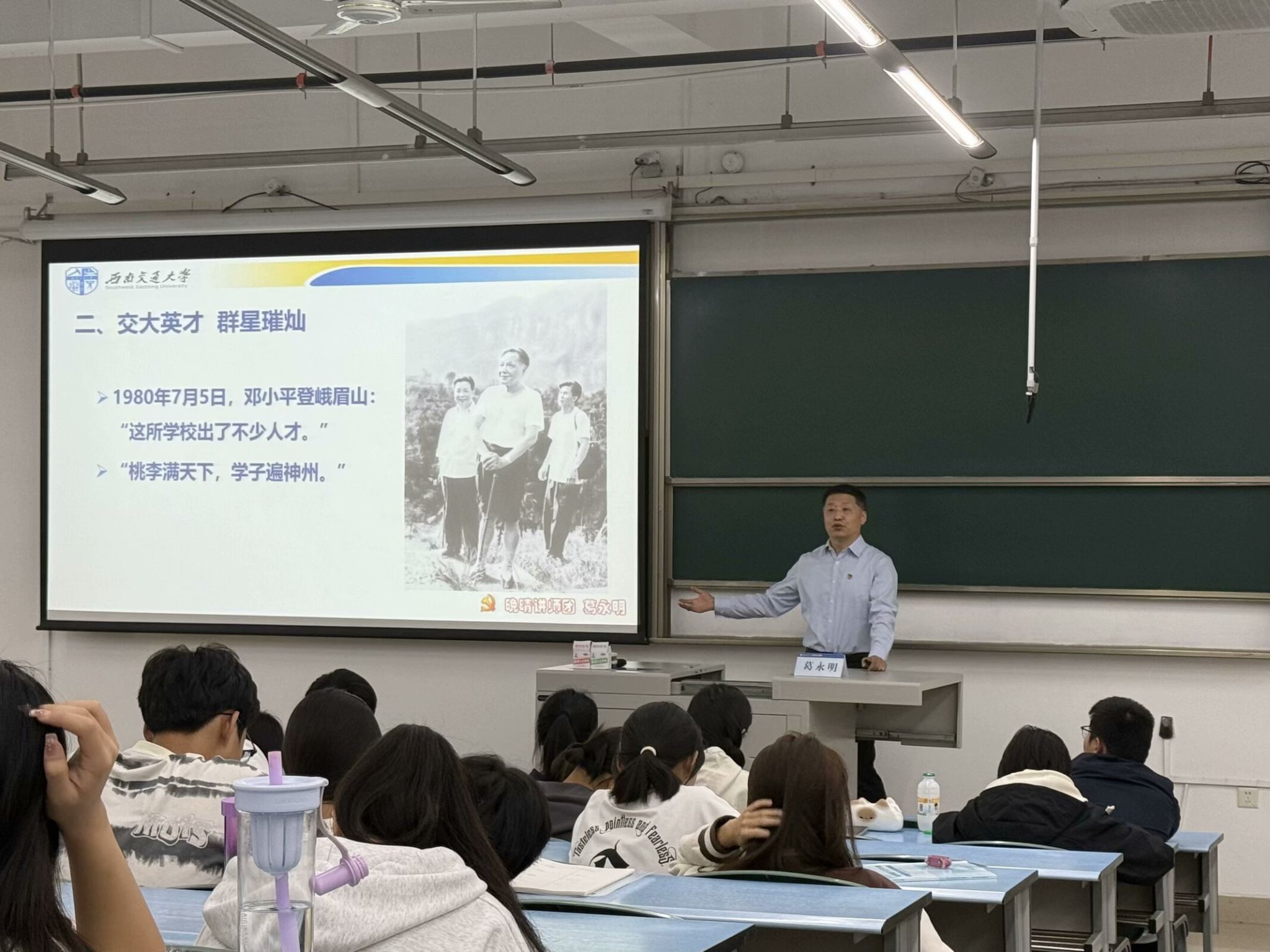 葛老师讲的太好了!到最后结束的时候,我一整个人都是心潮澎湃的。本来以为会是一堂很平常的讲座,老师一上来先拉了一曲小提琴,引起全场的关注。然后是校史讲解,从1896年山海关北洋铁路官学堂到唐山路矿学堂,再到如今的伟德官网。真的是步履维艰,抗日战争的火焰让我们被迫转移,北京,上海,湘南,唐山……我们四处奔波几十年,终于落脚到了四川。然后是建校以来的各位传奇人物,其中最为突出的便是茅以升教授了,少年天才,即使时光荏苒,也风华依旧。让我印象最深的便是“人民大会堂的建成,必须有茅以升的签名作担保。”这是在建筑学上何等崇高的地位啊,葛老师还讲到茅老先生即使90高龄也仍然能背出圆周率小数点后100位,甚至老师当场向我们表演了500位的背诵,全场掌声雷动,赞叹不已。其次便是詹天佑先生,虽不是交大学子,却又与交大密不可分,詹先生学贯东西,折服了不少西方学者。詹先生实事求是的精神也值得我们学习,“詹式车钩”的谣言盛极一时,面对这种荣誉,他选择了“无功不受禄”,主动出书立著来澄清这挂钩不是他所发明的。讲座最后全体起立,跨越数年,又回到祖国母亲七十周年的生日,与视频中的人们共同喊出那“强国有我”的口号,让我又一次的感受到胸腔中爱国情怀的涌动。葛永明老师的校史校情讲座是有活力,有生机,是真正能让观众用心去聆听的好讲座!